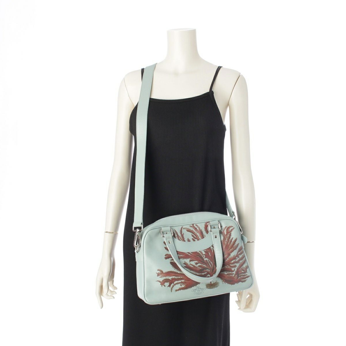 ジャックルコー Jacques Le Corre × ジョンデリアン John Derian レザー リスボン 2WAY ショルダー ハンドバッグ ライトブルー