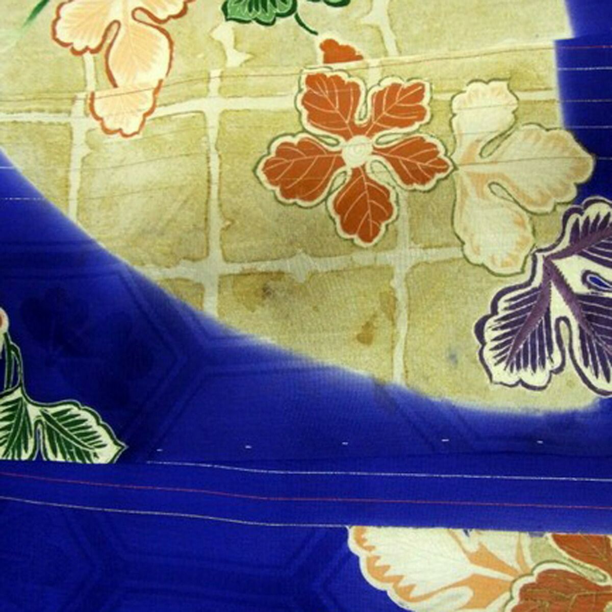 上前に画像のような目立つしみあり。ほか全体に細かいしみや色抜け、色移りが見られます。金コマ刺繍のほつれが数カ所見られます。胴裏が全体的に黄変しています。
