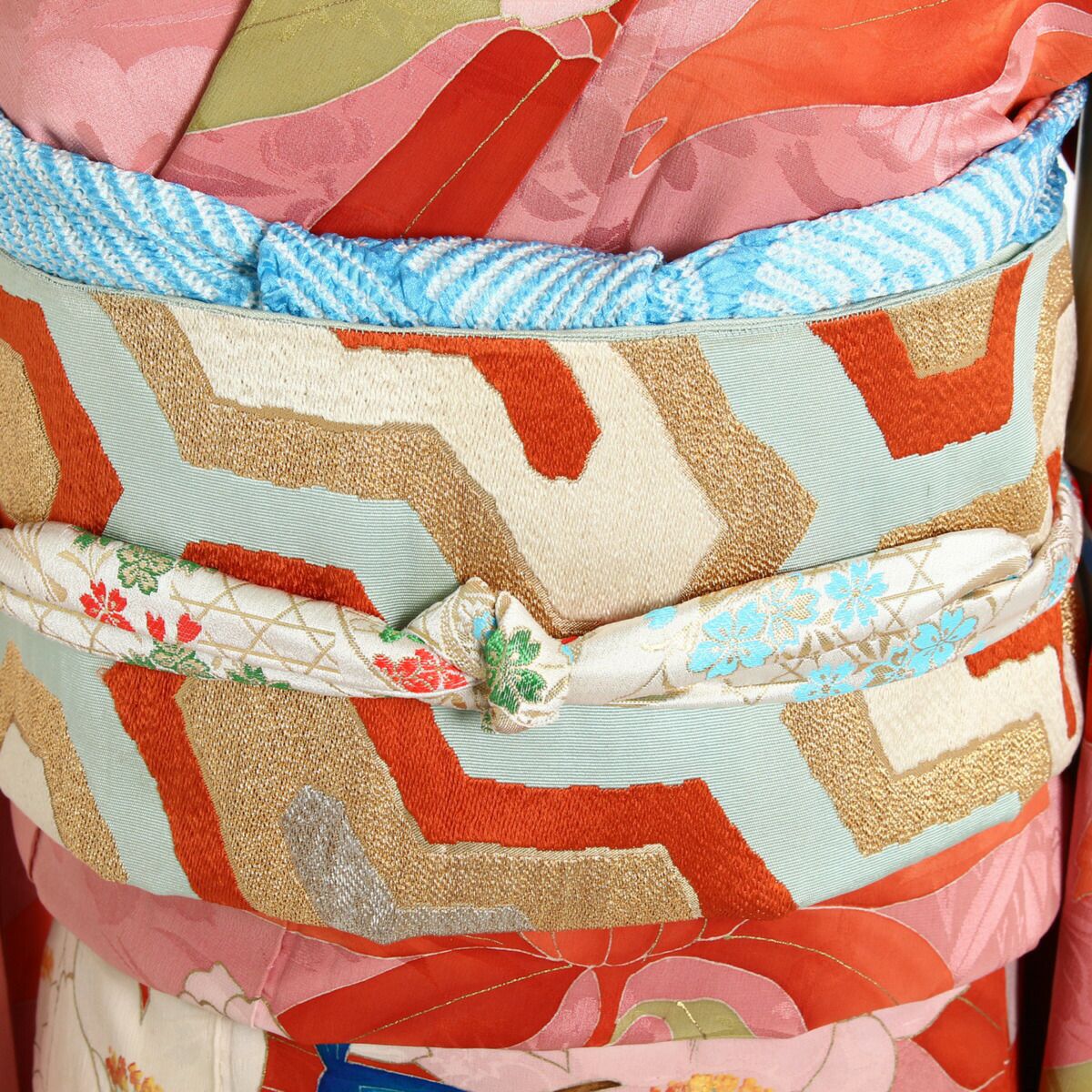 振袖 着物 五つ紋 花柄模様 ピンク系(帯別売り)