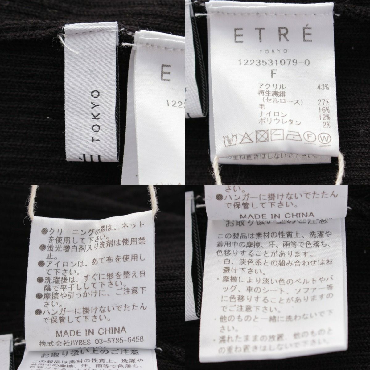 エトレ トウキョウ ジップアップ ニット ロングワンピース 1223531079-0 ブラック F