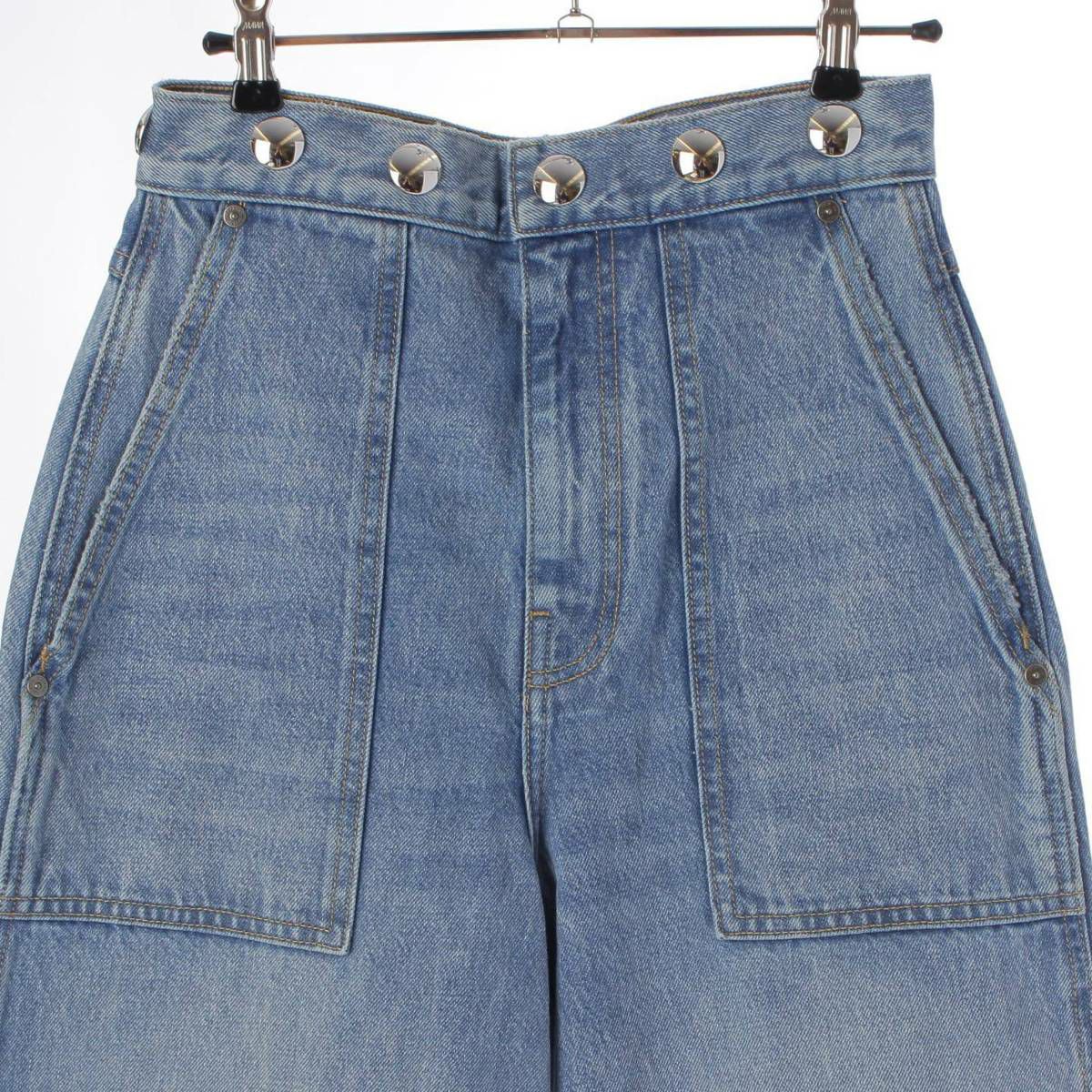 ケイト デニム ワイド バギーパンツ ウエストデザイン ウォッシュ アイスブルー 25