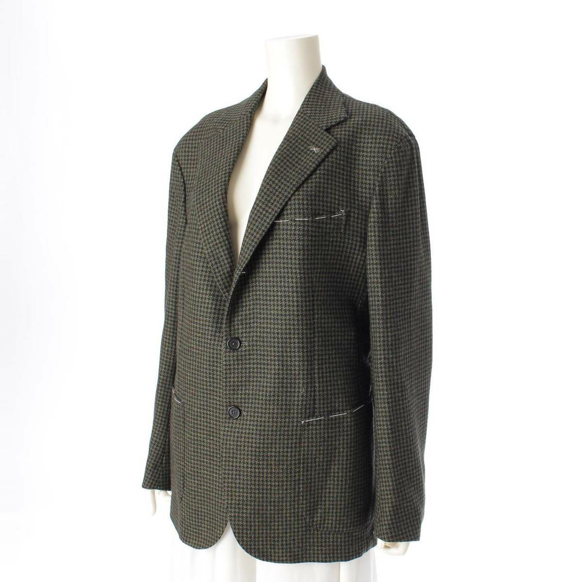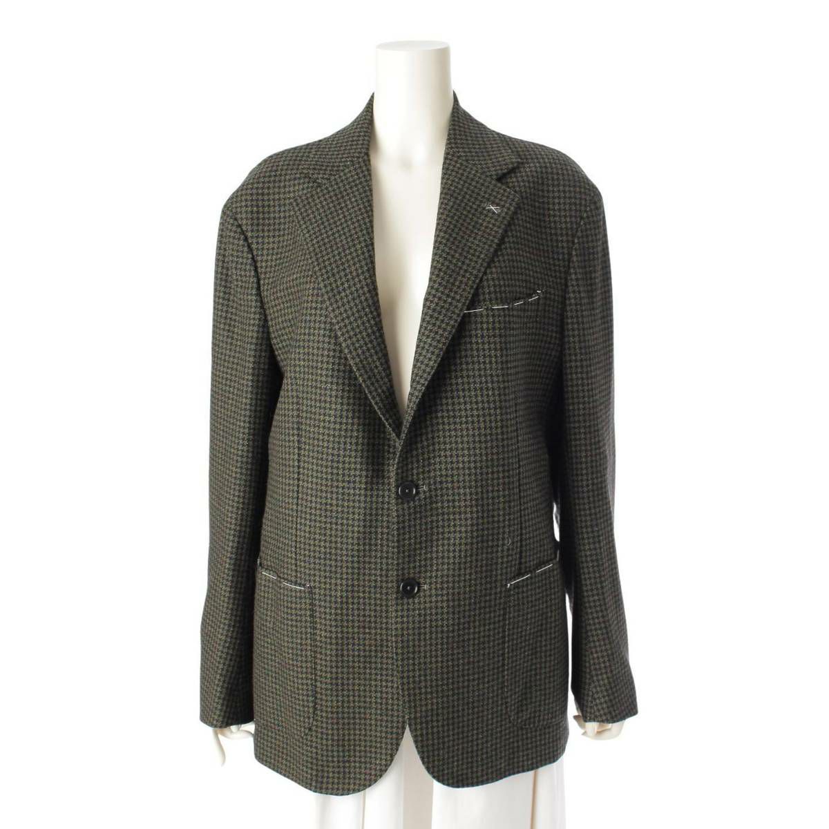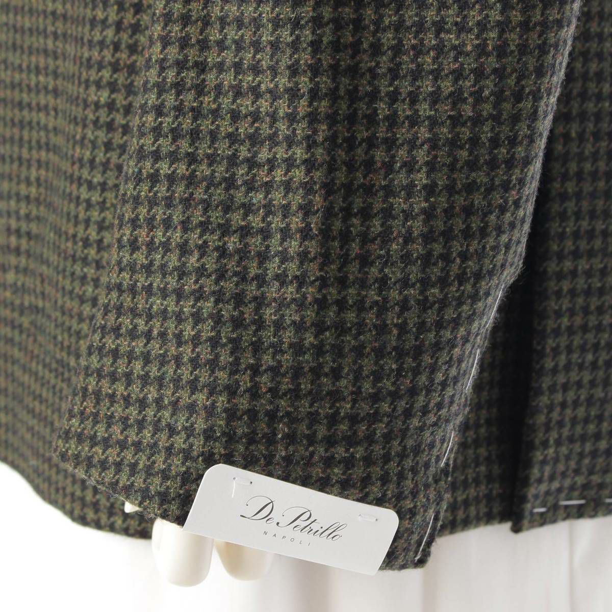 デペトリロ カシミヤ ウール 千鳥チェック シングル ブレザー ジャケット グリーン 50