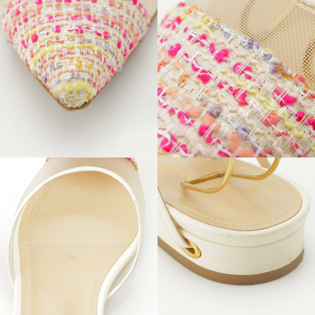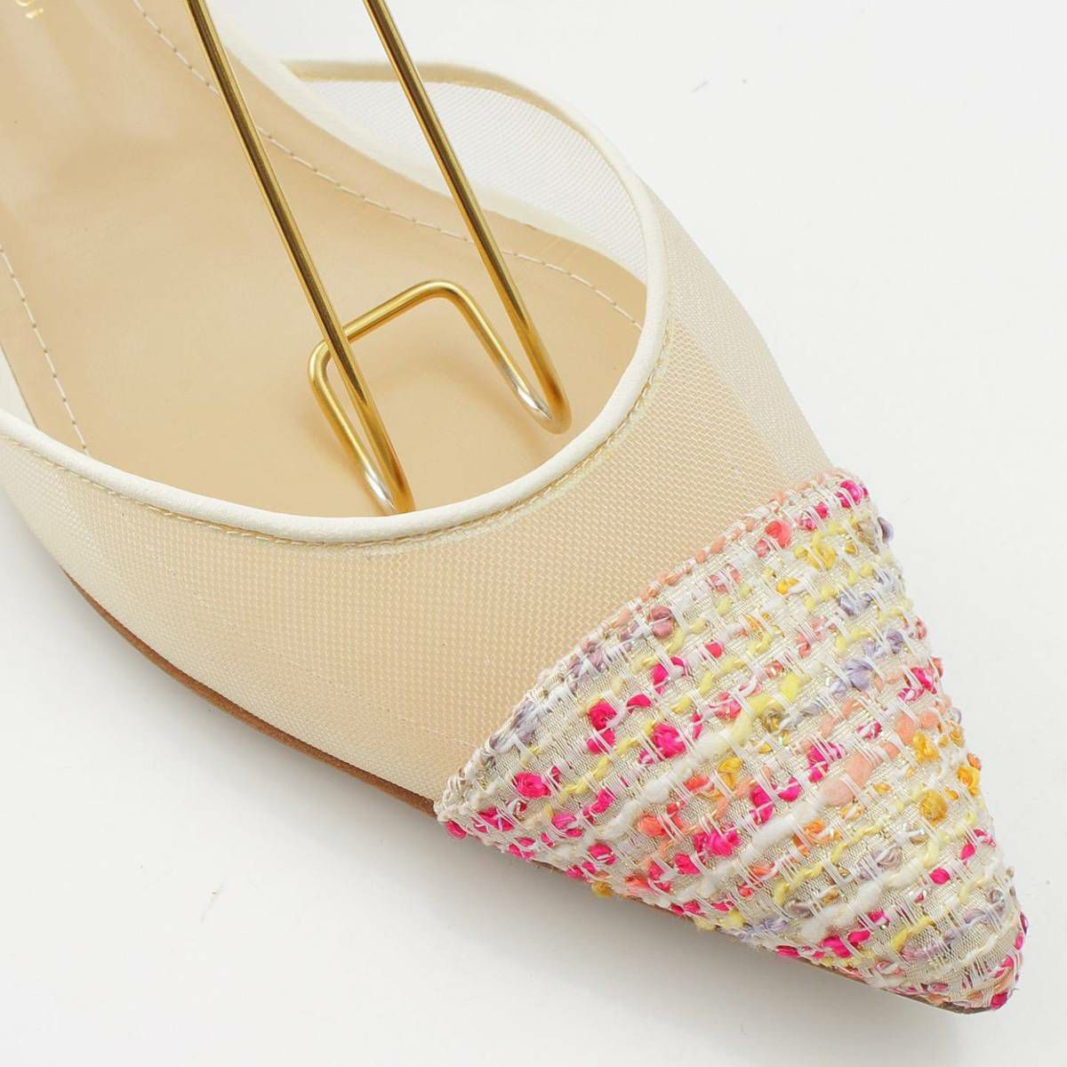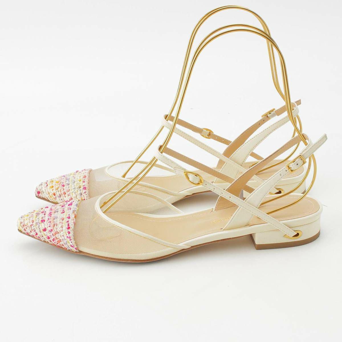 ジェニファーチャマンディ ツイード メッシュ フラット パンプス ベージュ×ピンク 39