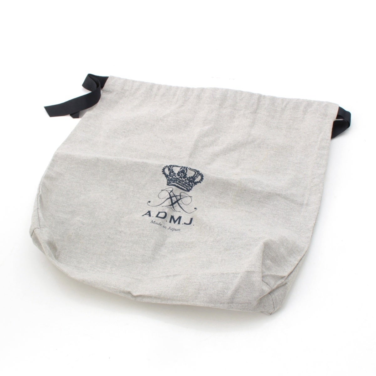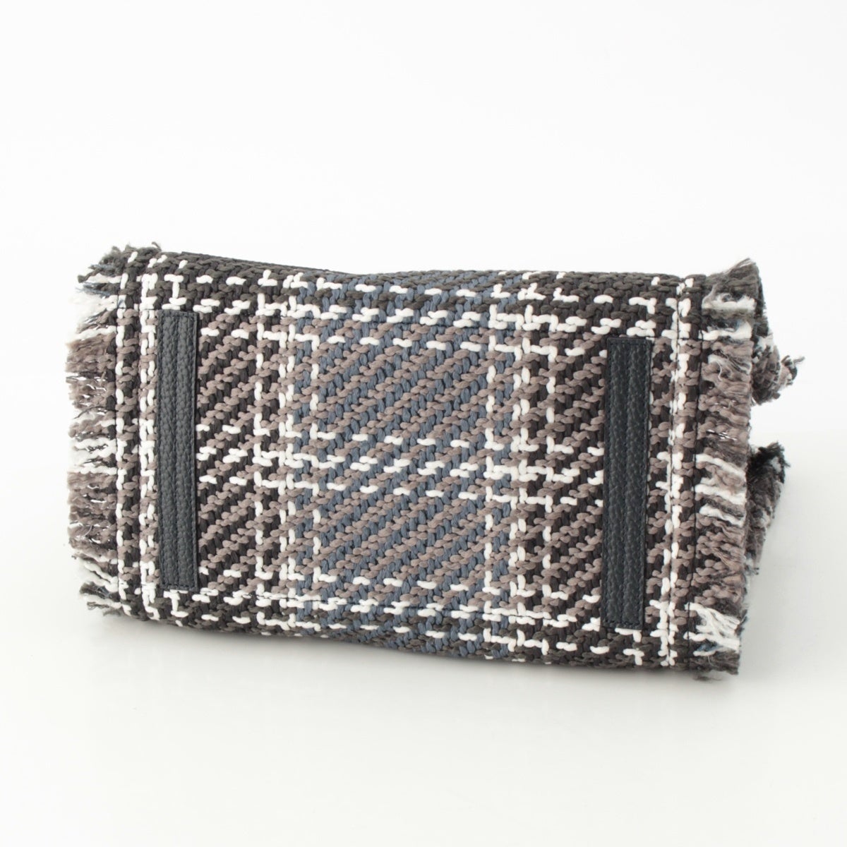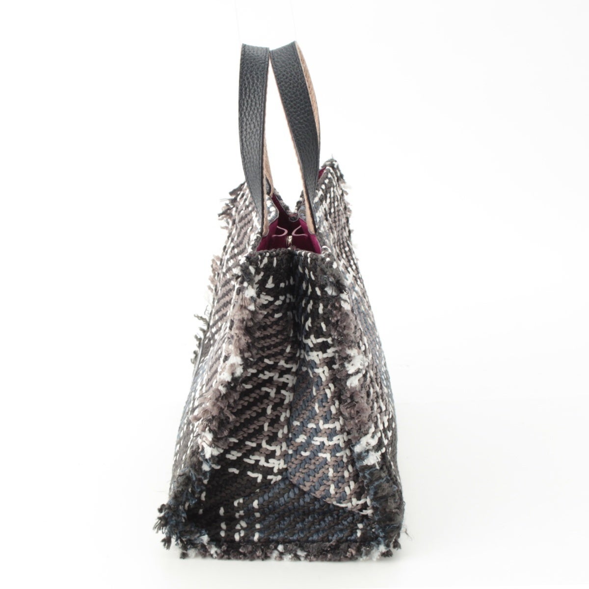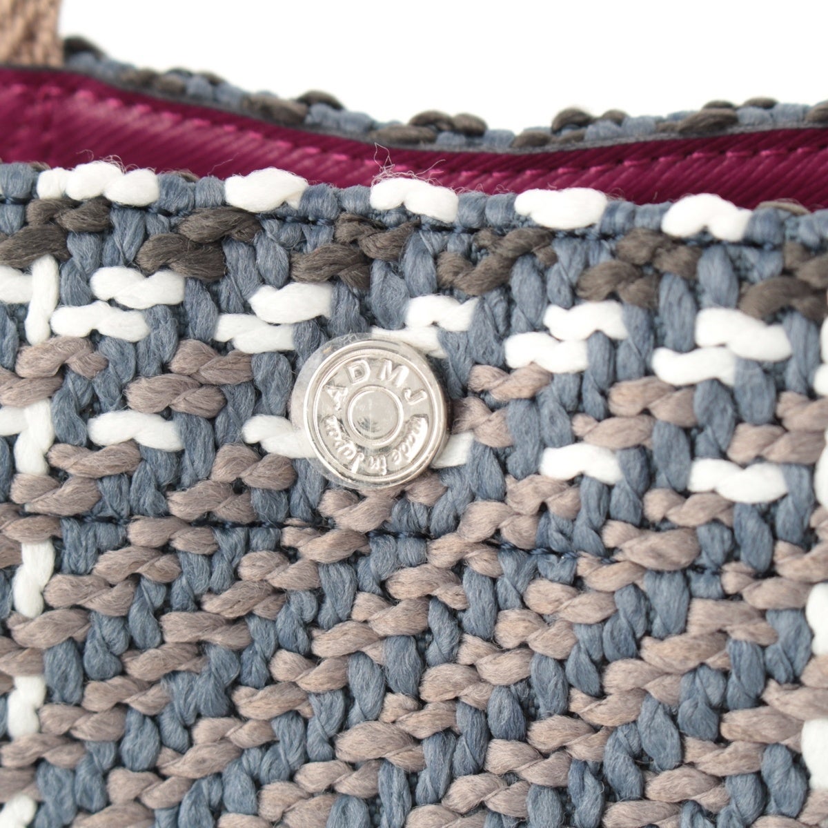 エーディーエムジェイ ツイードツイル フリンジ チェック トート ハンドバッグ ネイビー グレー