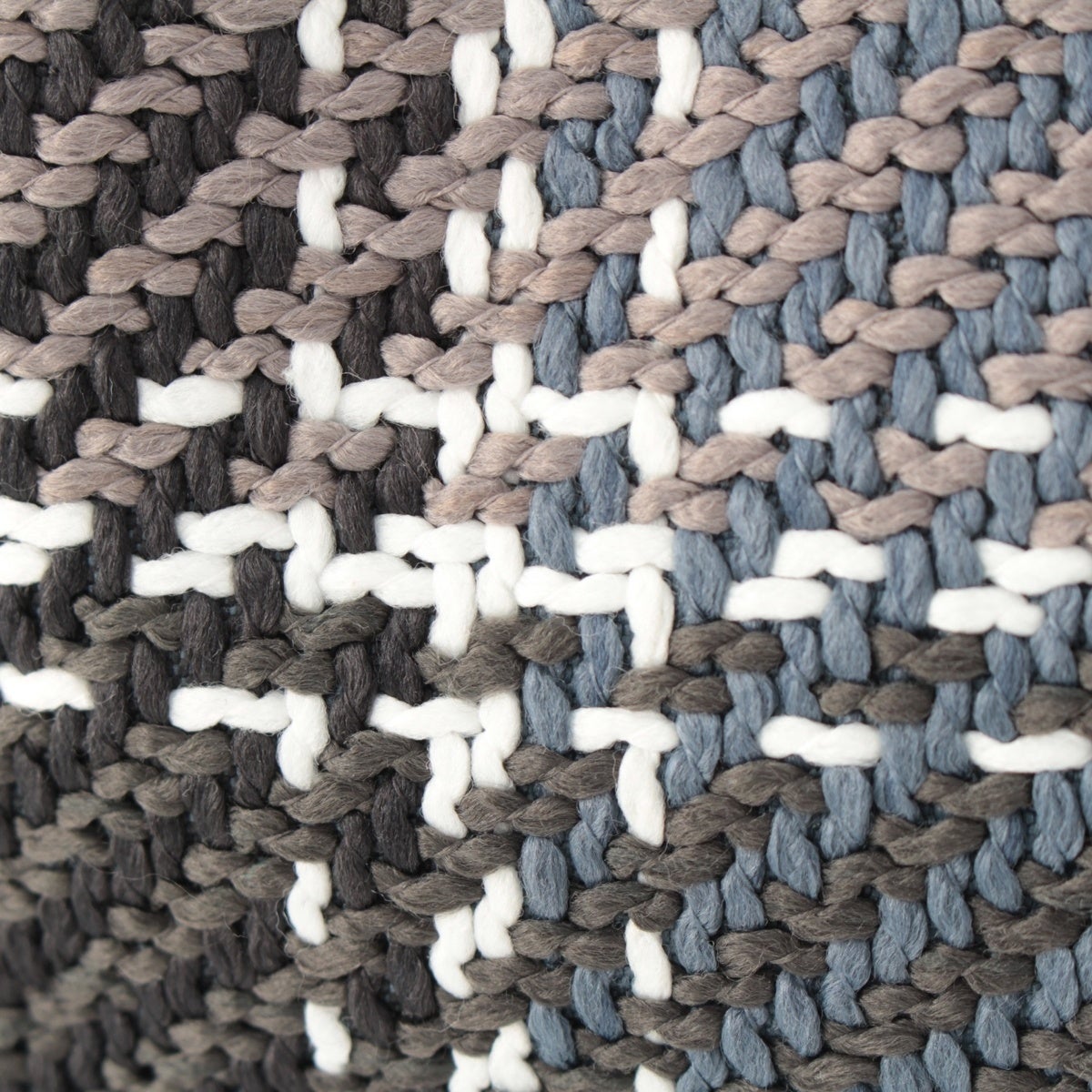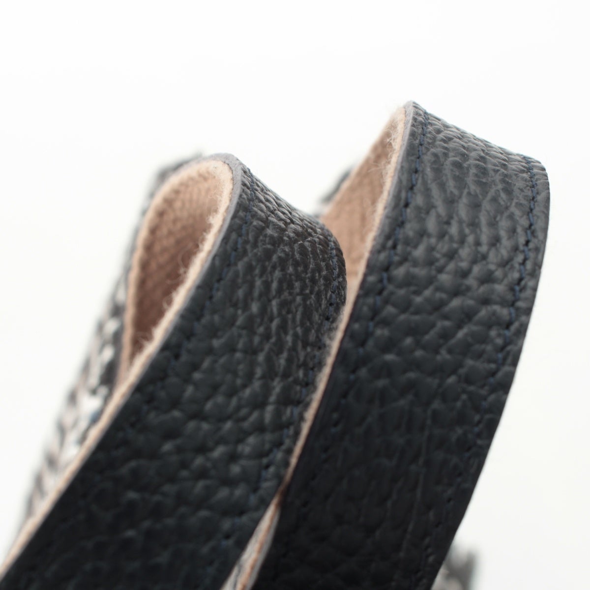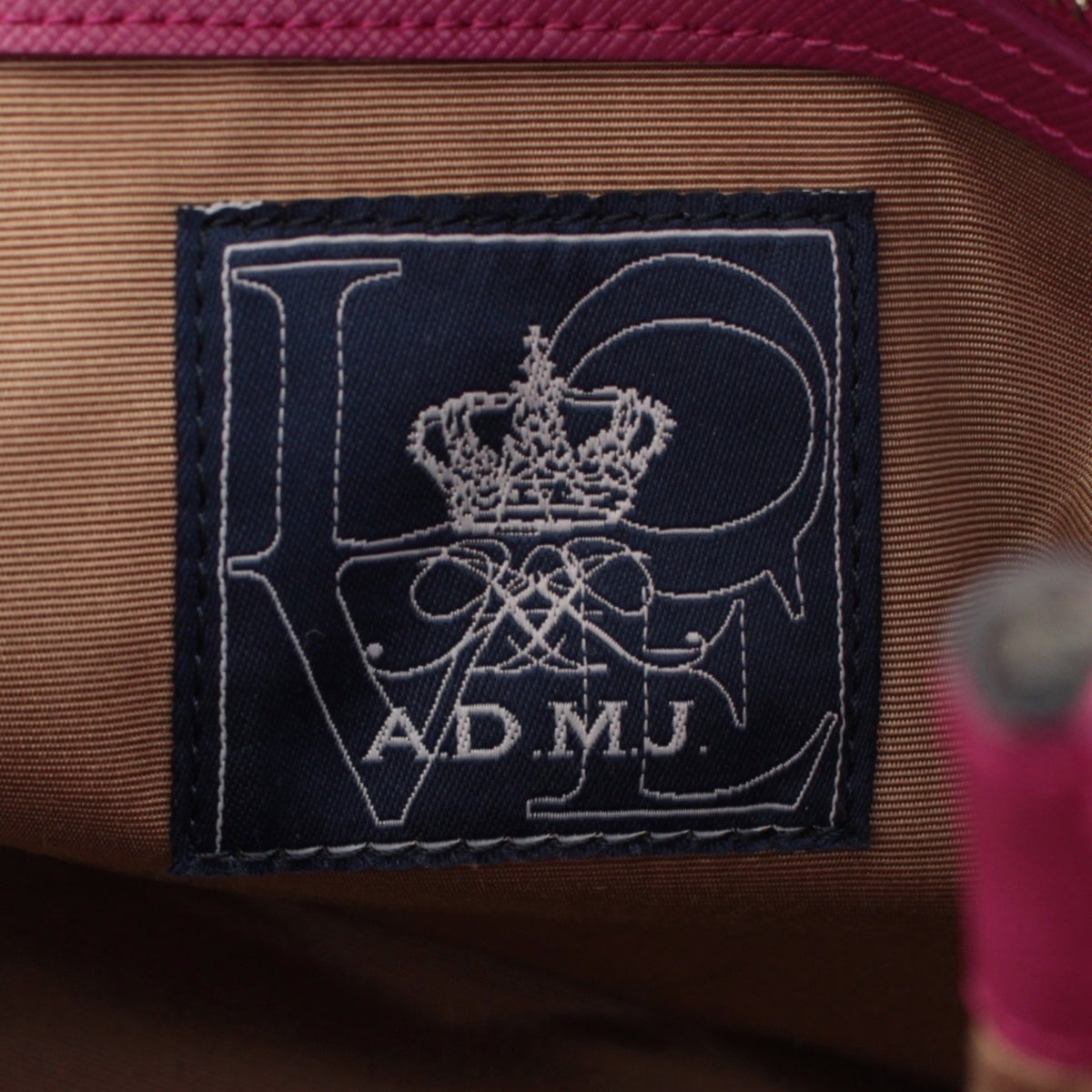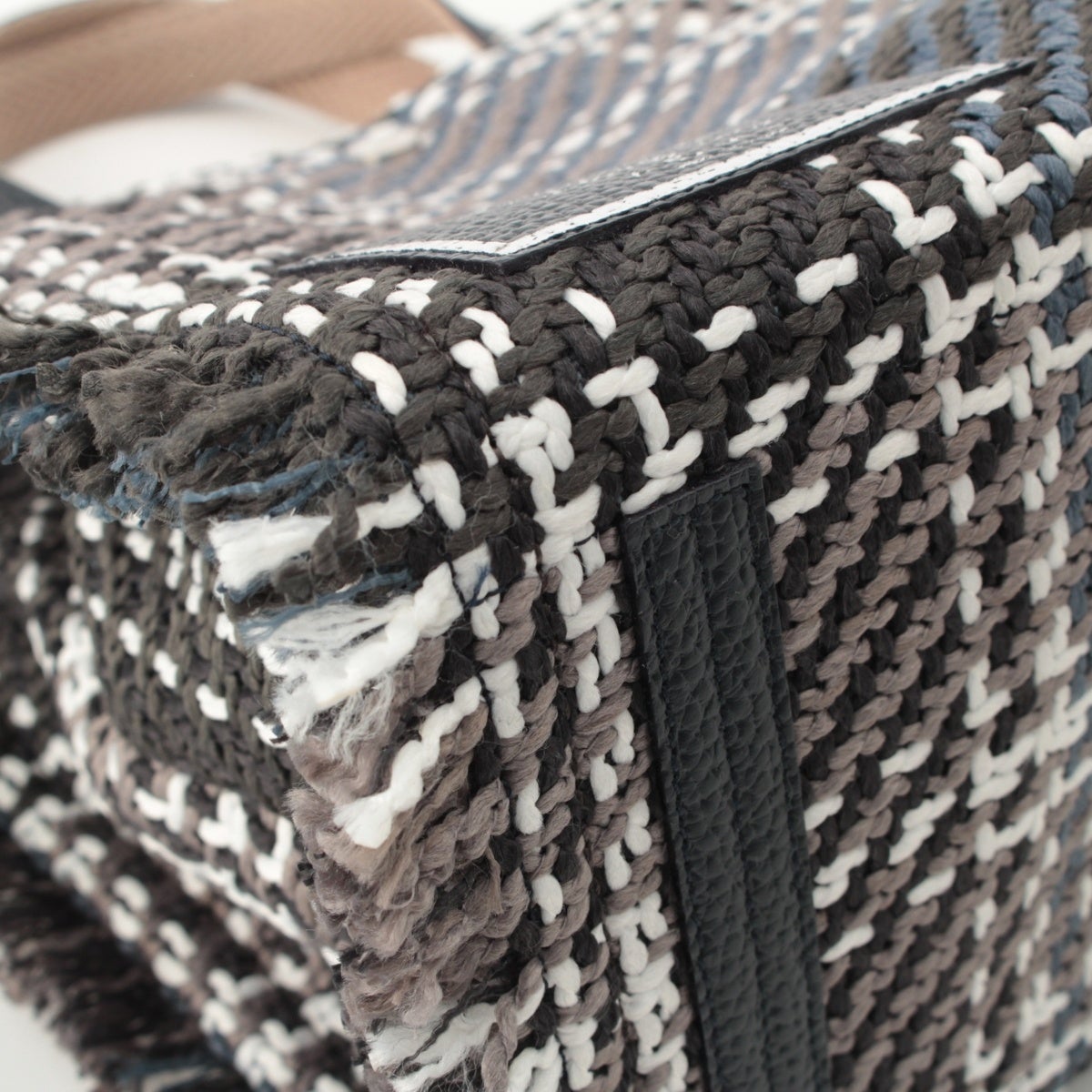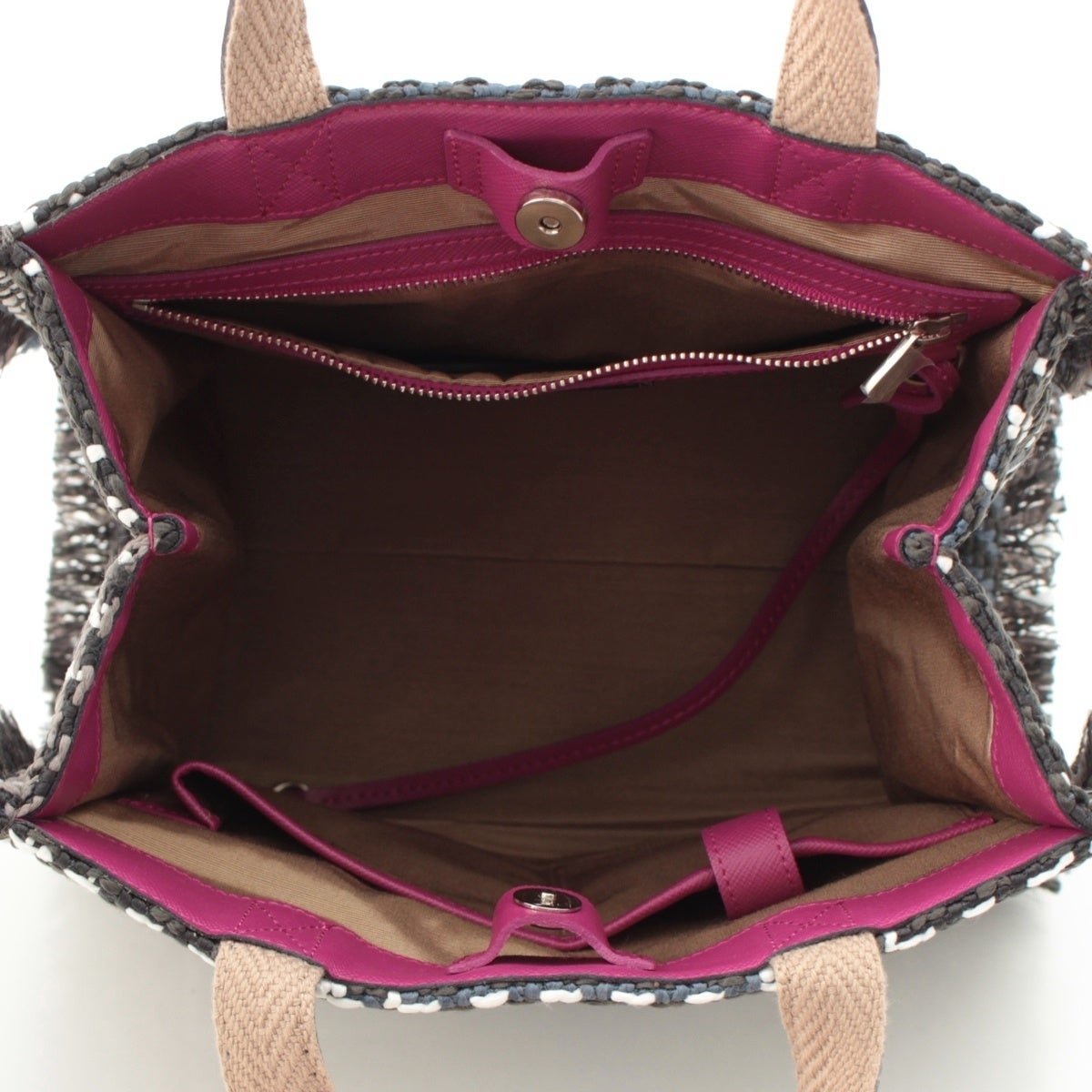 エーディーエムジェイ ツイードツイル フリンジ チェック トート ハンドバッグ ネイビー グレー