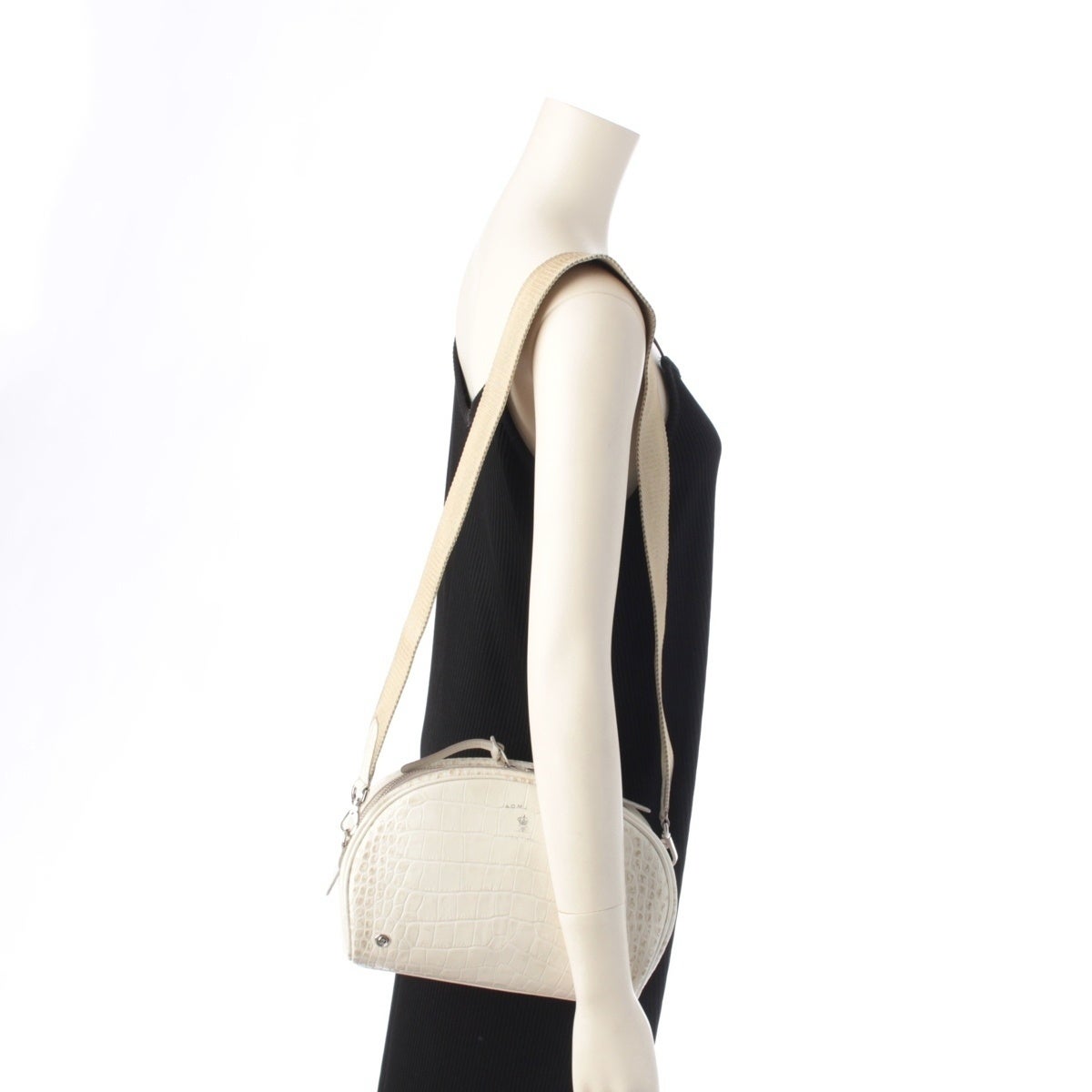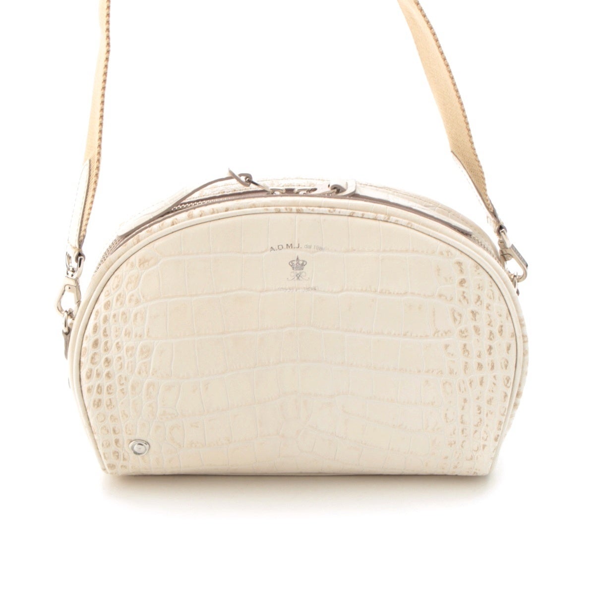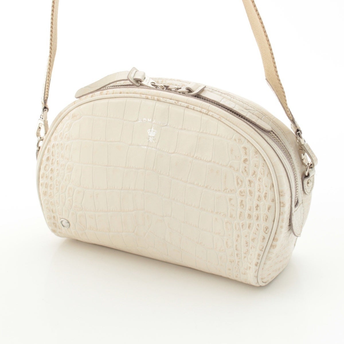 エーディーエムジェイ クロコ型押し ショルダーバッグ オフホワイト