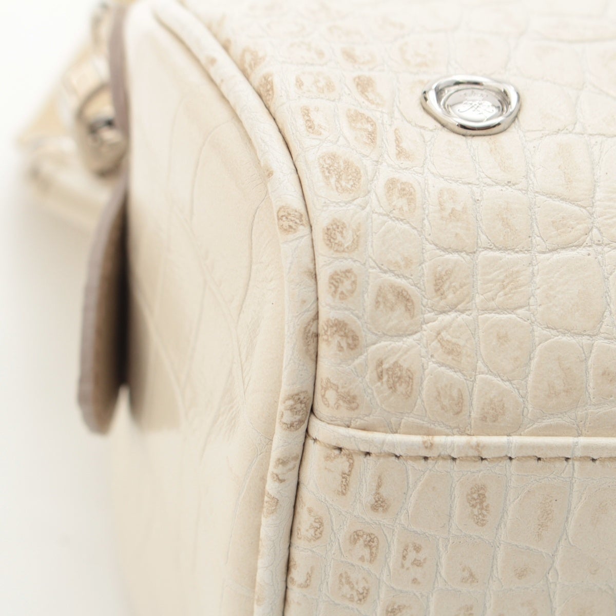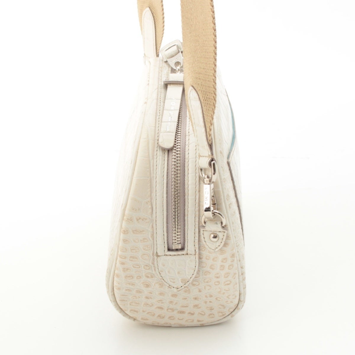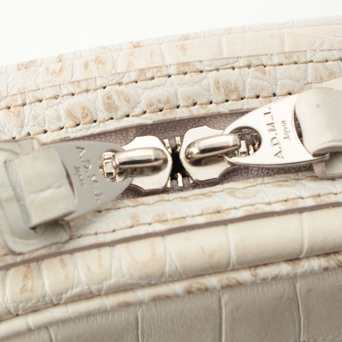 エーディーエムジェイ クロコ型押し ショルダーバッグ オフホワイト