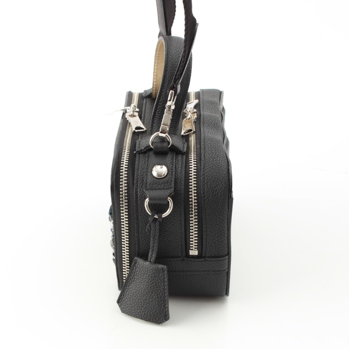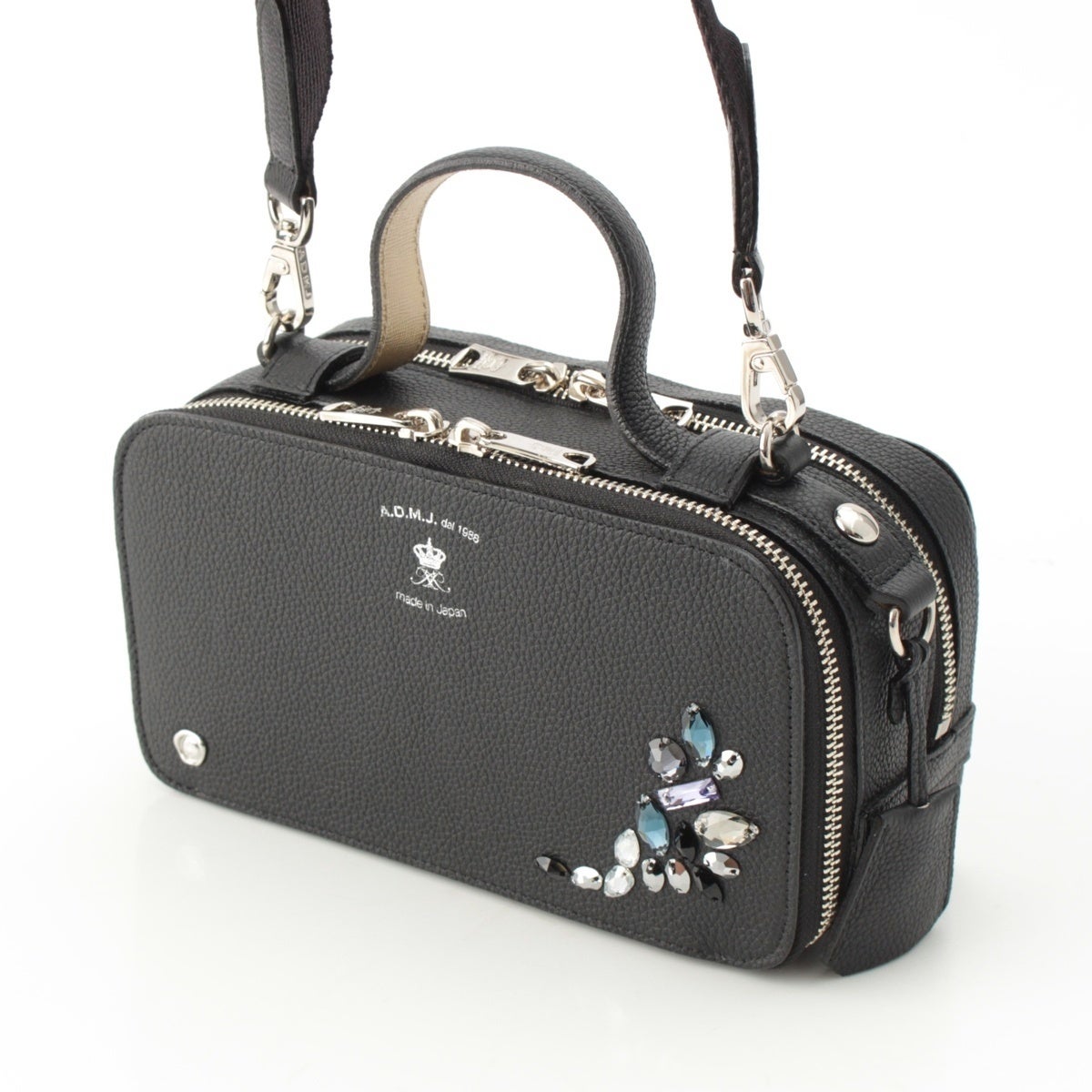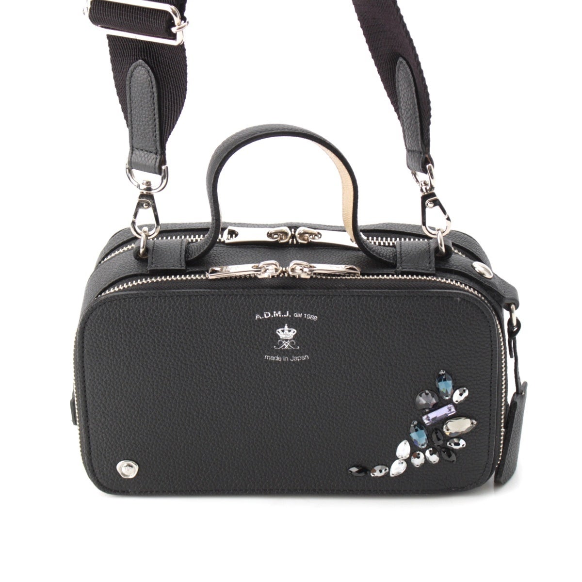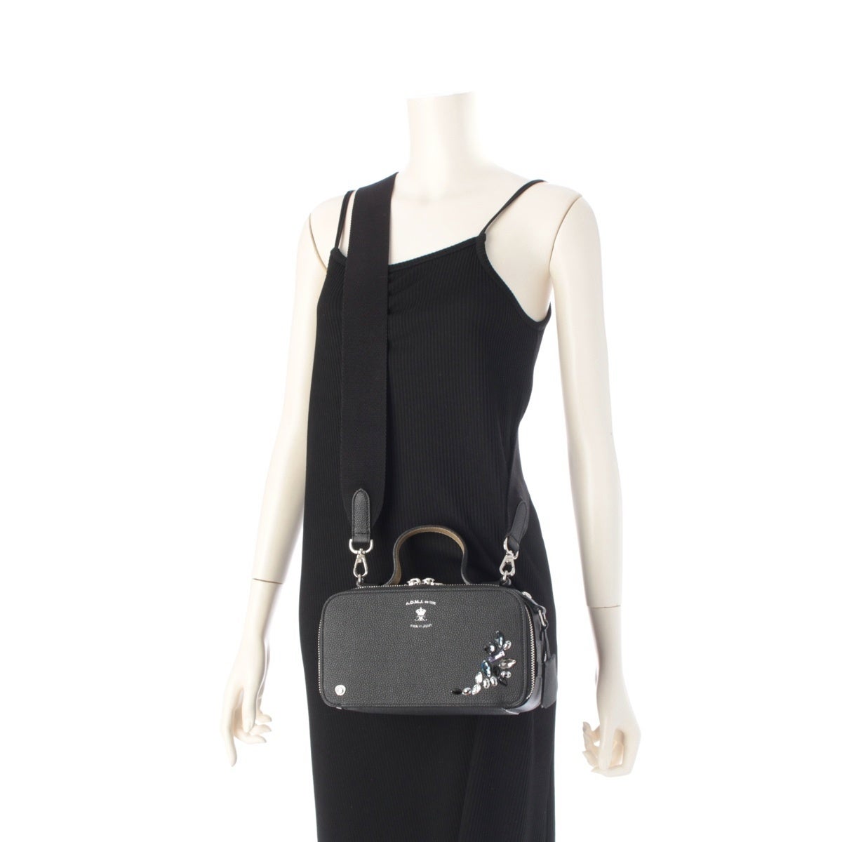 エーディーエムジェイ スワロフスキー モーツァルト レザー ショルダーバッグ ブラック