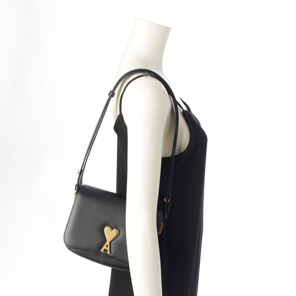 アミパリス グレインレザー アミアレクサンドル マテュッシ ロゴプレート ショルダーバッグ ブラック