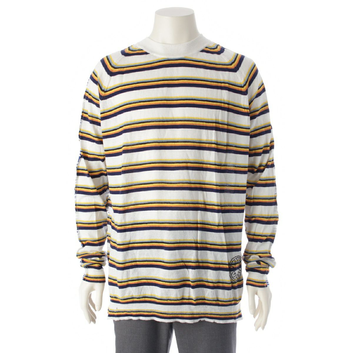 マルニ 22SS コットンリネン ボーダー ニット LS Tシャツ ロゴ刺繍 ロングスリーブ クルーネック GCMC0252Q0 ホワイト 52