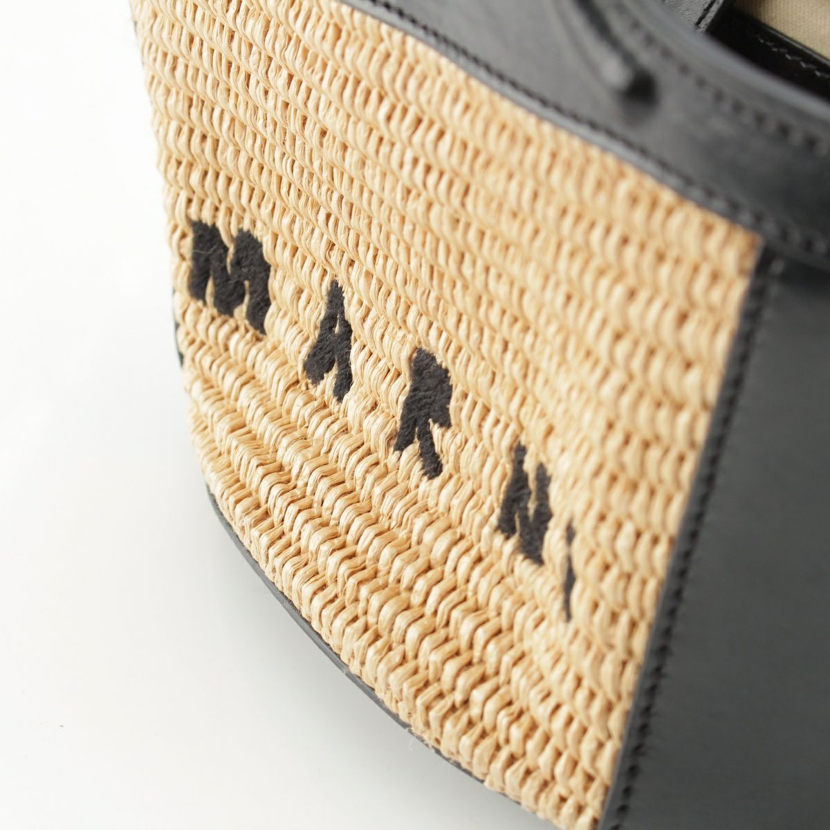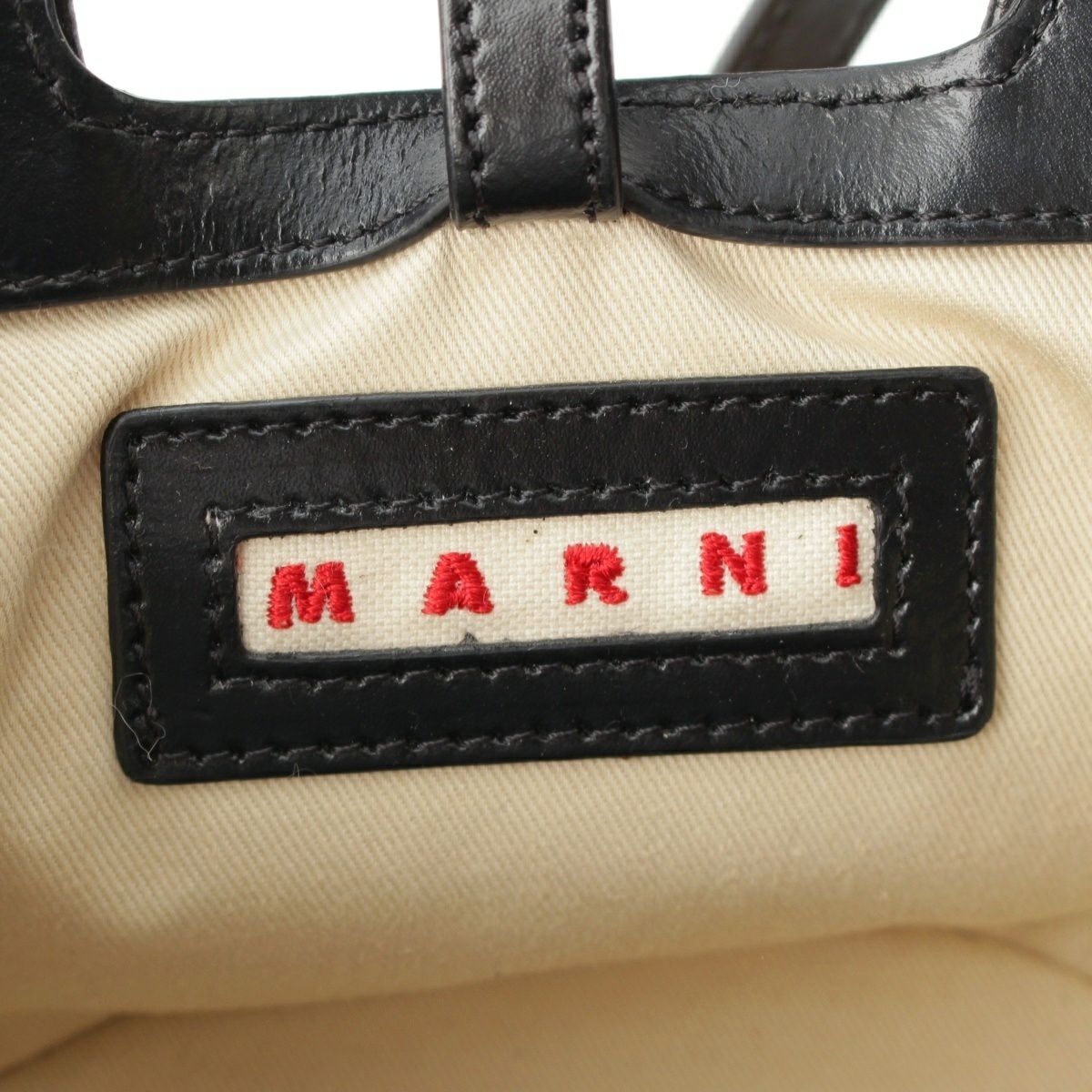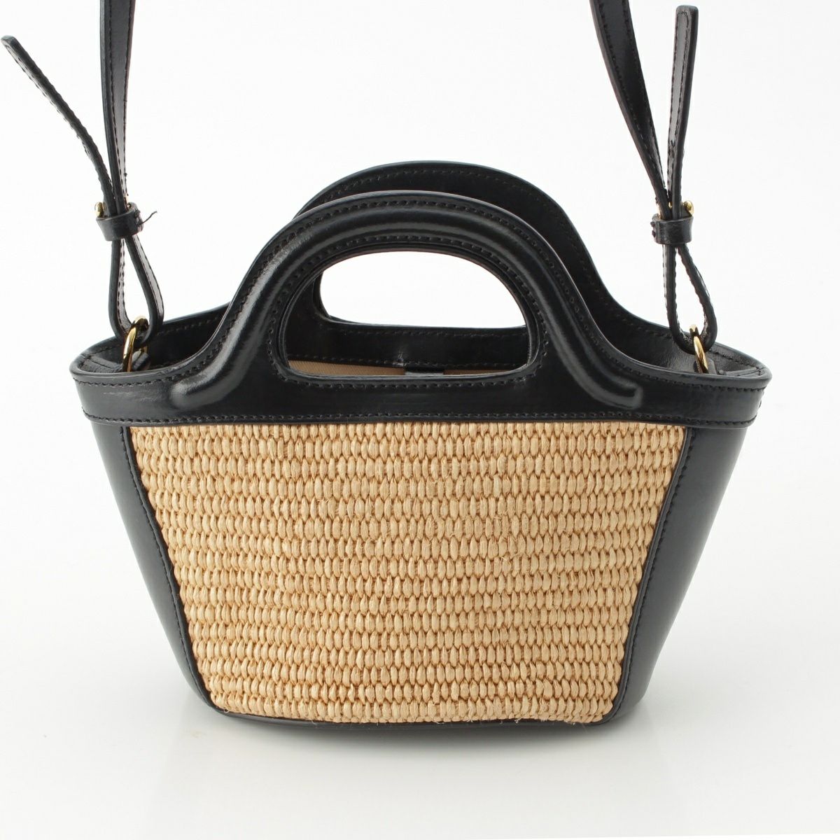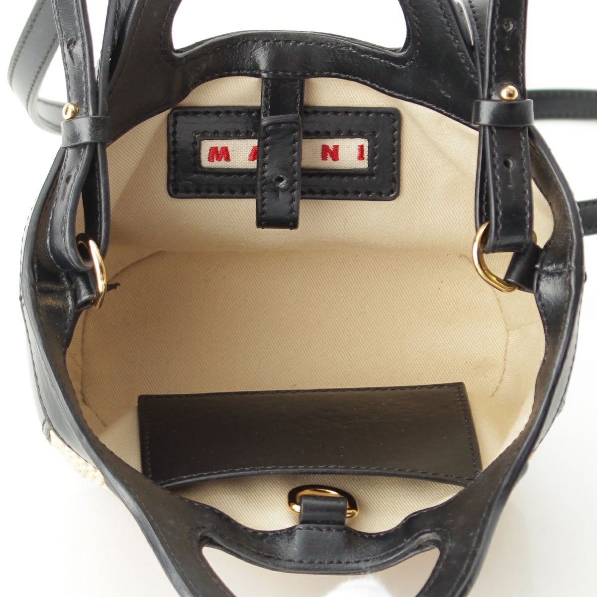 マルニ トロピカリア マイクロ ストロー レザー ロゴ 2WAY ショルダー ハンドバッグ ベージュ ブラック