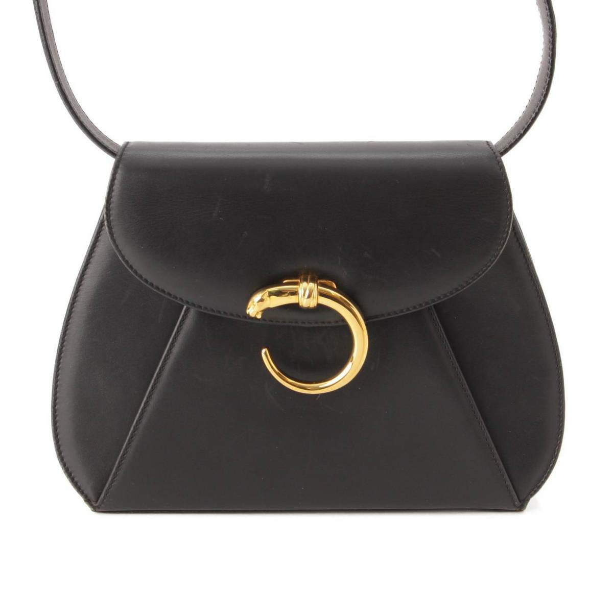 カルティエ Cartier パンテール レザー トップハンドル ハンドバッグ ショルダーバッグ ブラック
