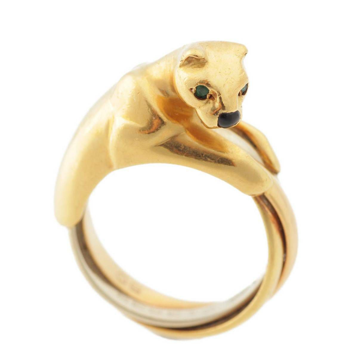 カルティエ Cartier パンテール トリニティ エメラルド オニキス 750YG K18 リング 指輪 50 10.9g