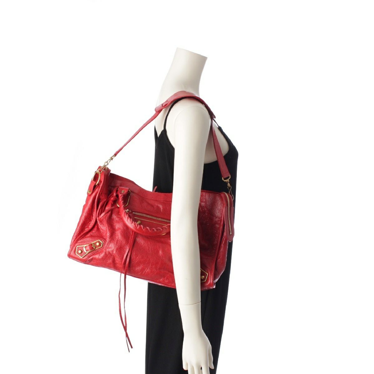バレンシアガ メタリックエッジシティ レザー ミラー付き 2WAY ショルダー ハンドバッグ 390154 レッド