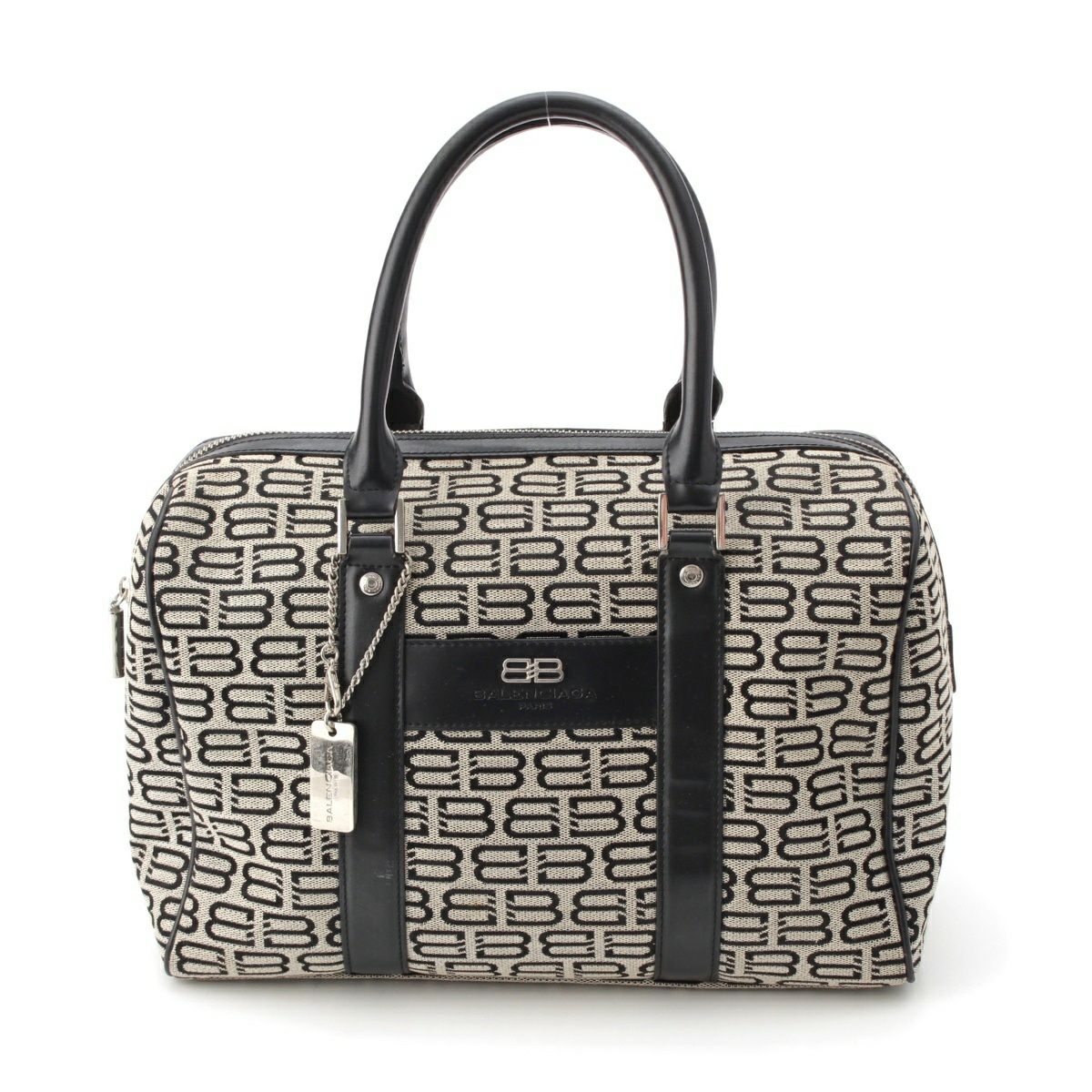 バレンシアガ キャンバス レザー BBロゴ ボストンバッグ ハンドバッグ 鞄 ブラック