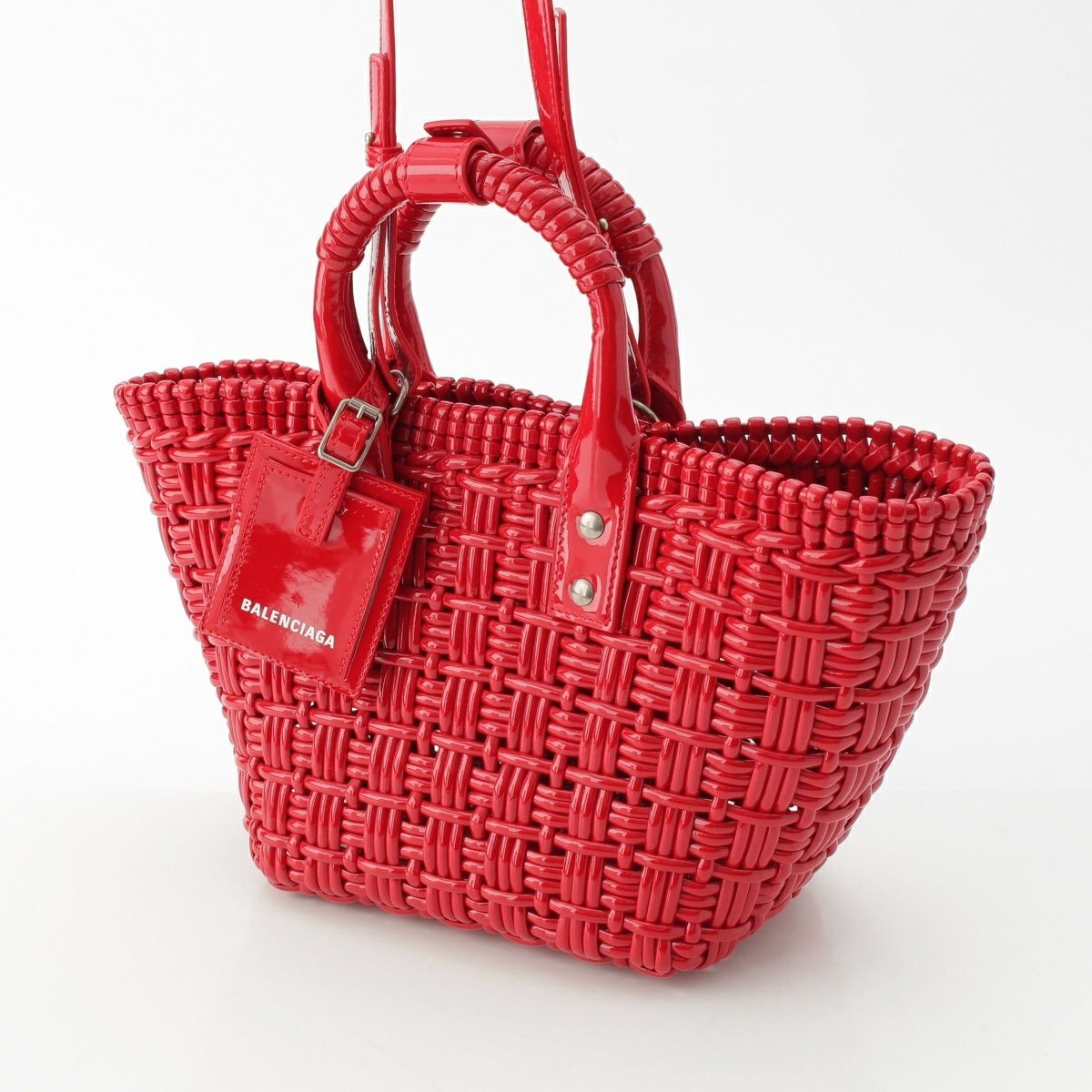 バレンシアガ パテントレザー ビストロ バスケット ハンドバッグ 671342 レッド XS