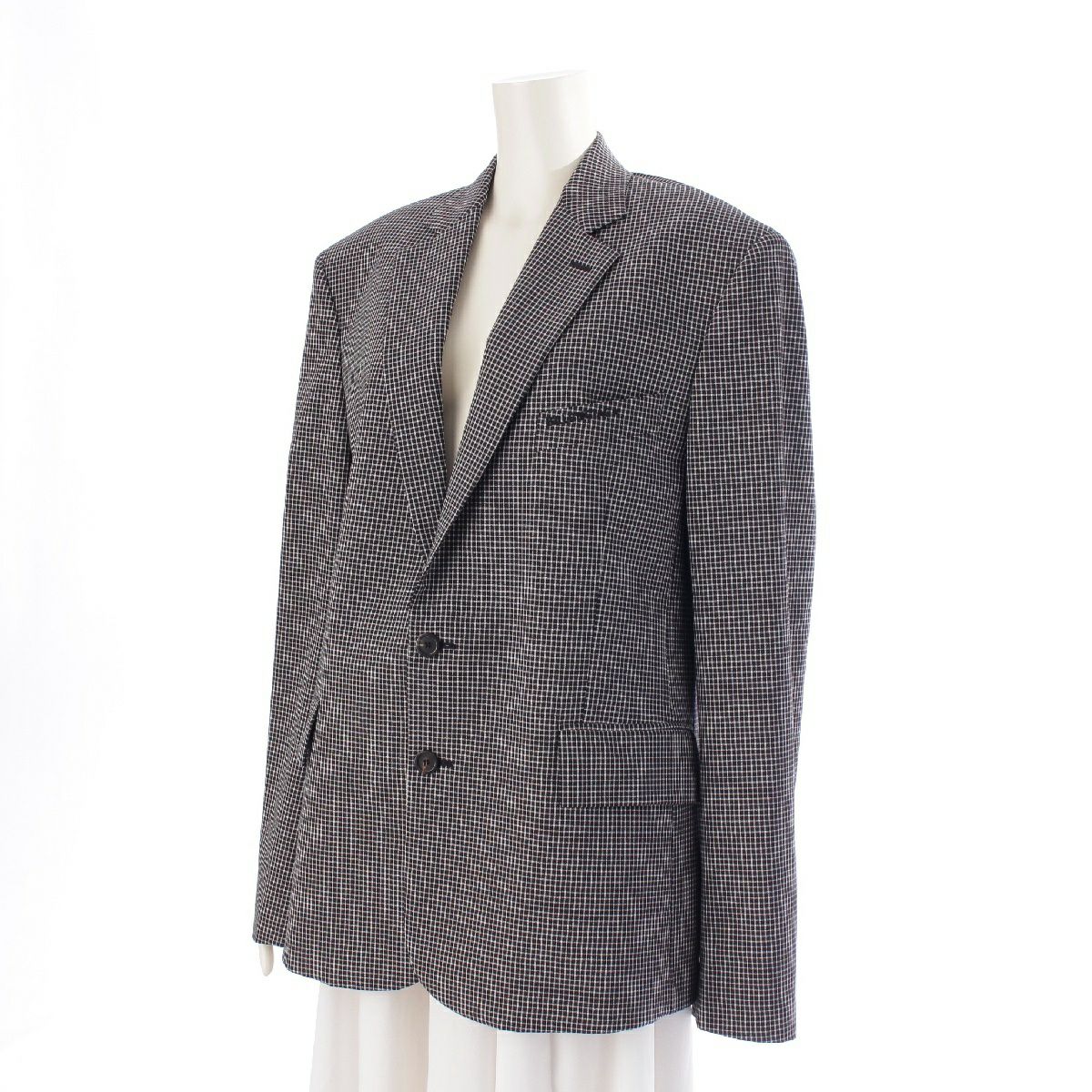 バレンシアガ ウール ロゴ チェック 2B シングル テーラードジャケット 627586 ブラック 32