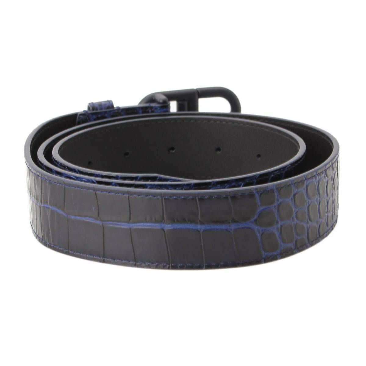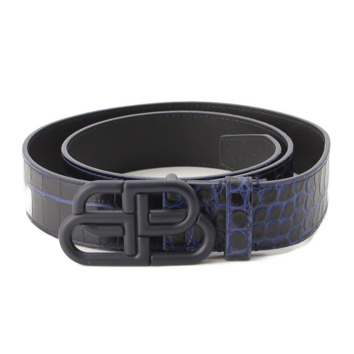 バレンシアガ Balenciaga マットロゴバックル クロコ型押しレザー ベルト 570370 ブルー×ブラック