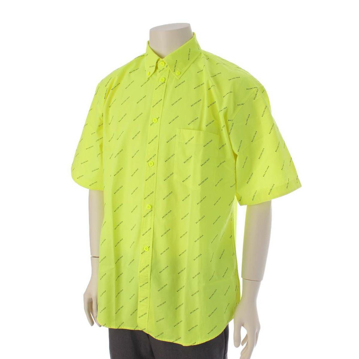 バレンシアガ Balenciaga 20SS メンズ オーバーサイズ ロゴプリント 半袖 シャツ トップス 534332 イエロー 38