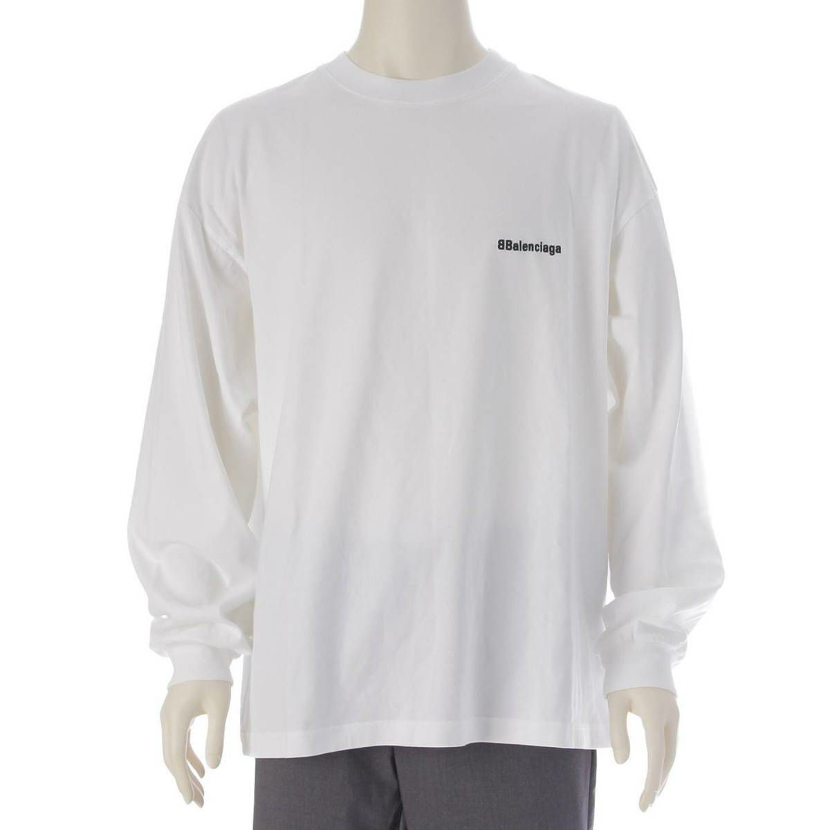 バレンシアガ 21年 メンズ ロゴ 長袖 ロングTシャツ カットソー トップス 541701 ホワイト M