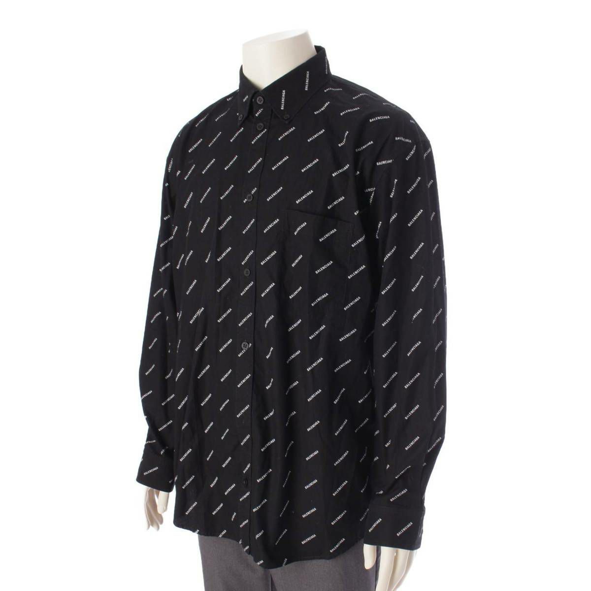 バレンシアガ Balenciaga オールオーバーロゴ 総柄 長袖 シャツ トップス 534333 ブラック 39