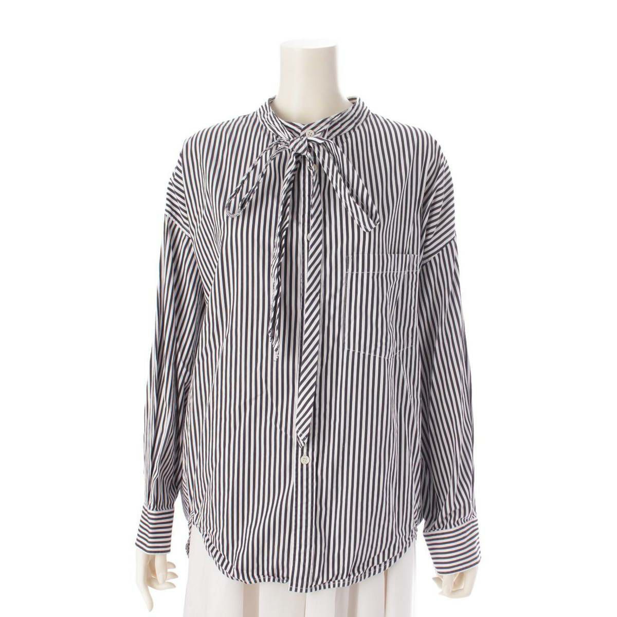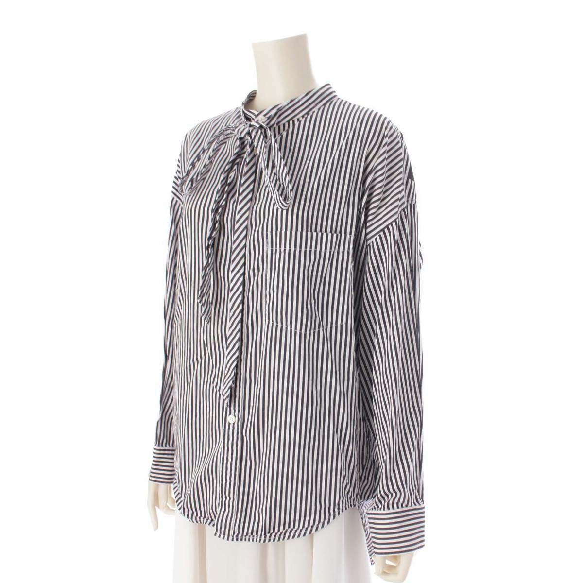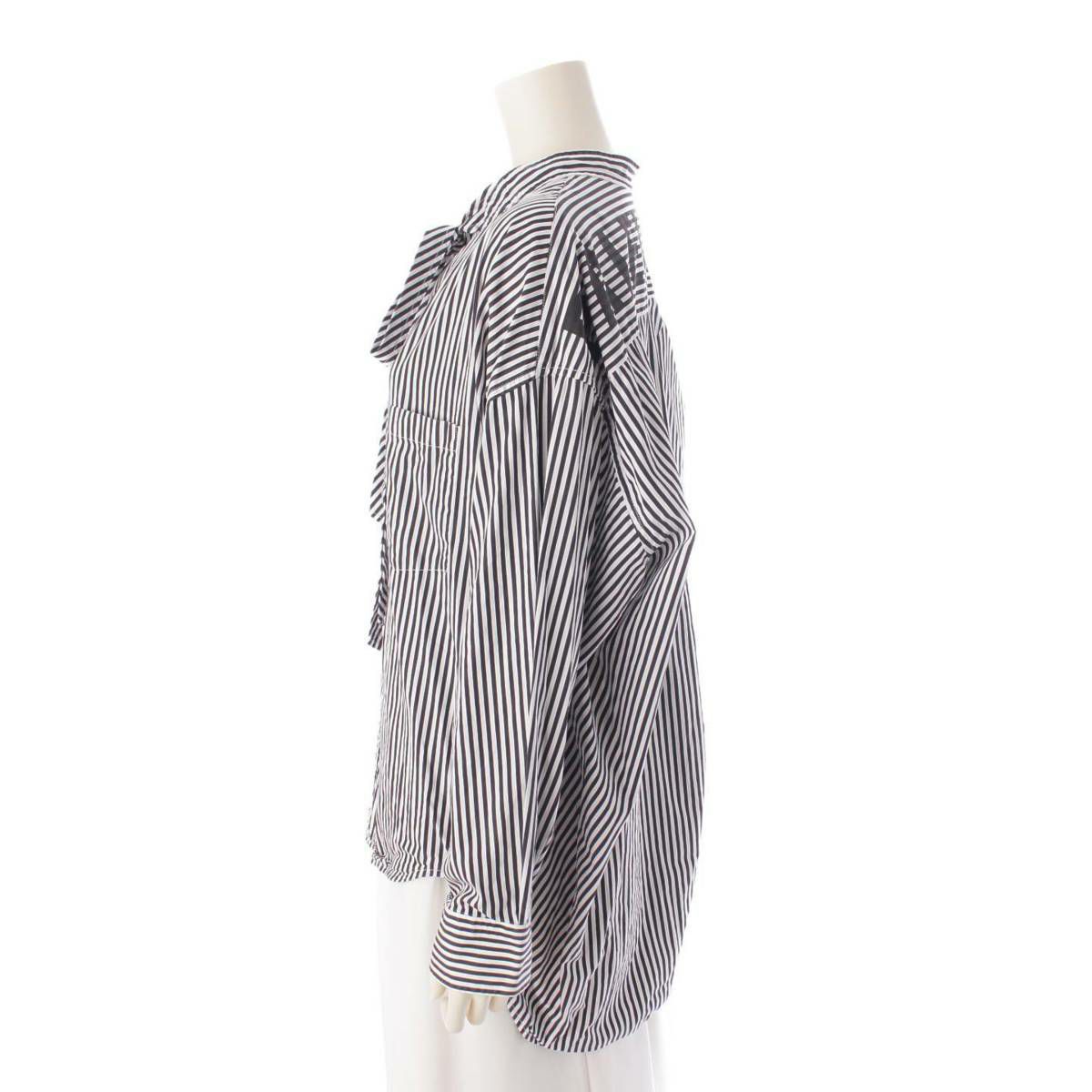 バレンシアガ Balenciaga バックロゴ ストライプシャツ ブラウス 520497 ブラック×ホワイト 36
