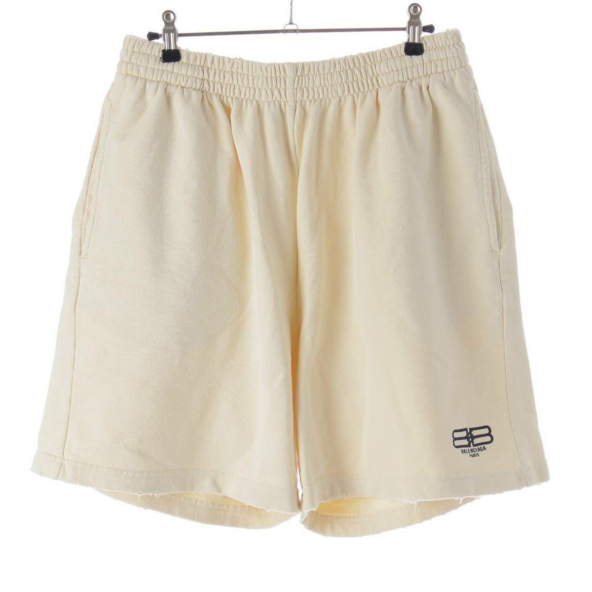 バレンシアガ 23AW メンズ BB PARIS ICON ロゴ ダメージ加工 ショートパンツ 676137 クリーム XS