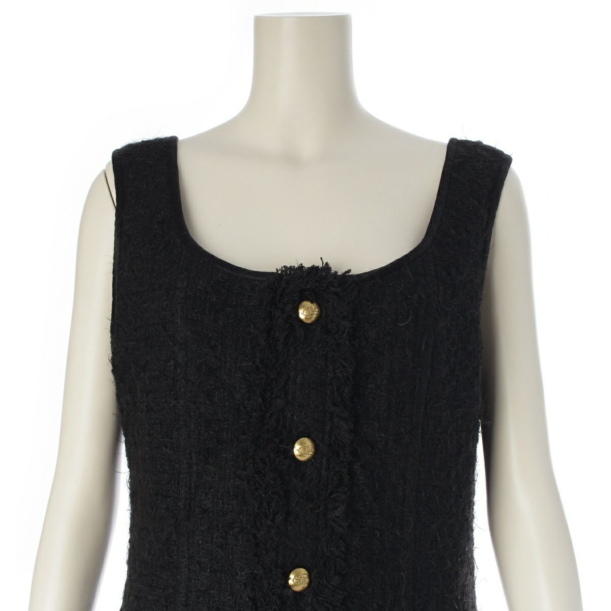 ブラミンク 金ボタン 前開き ツイード Aライン ノースリーブ ロング ワンピース ドレス 7926-230-0312 ブラック 38