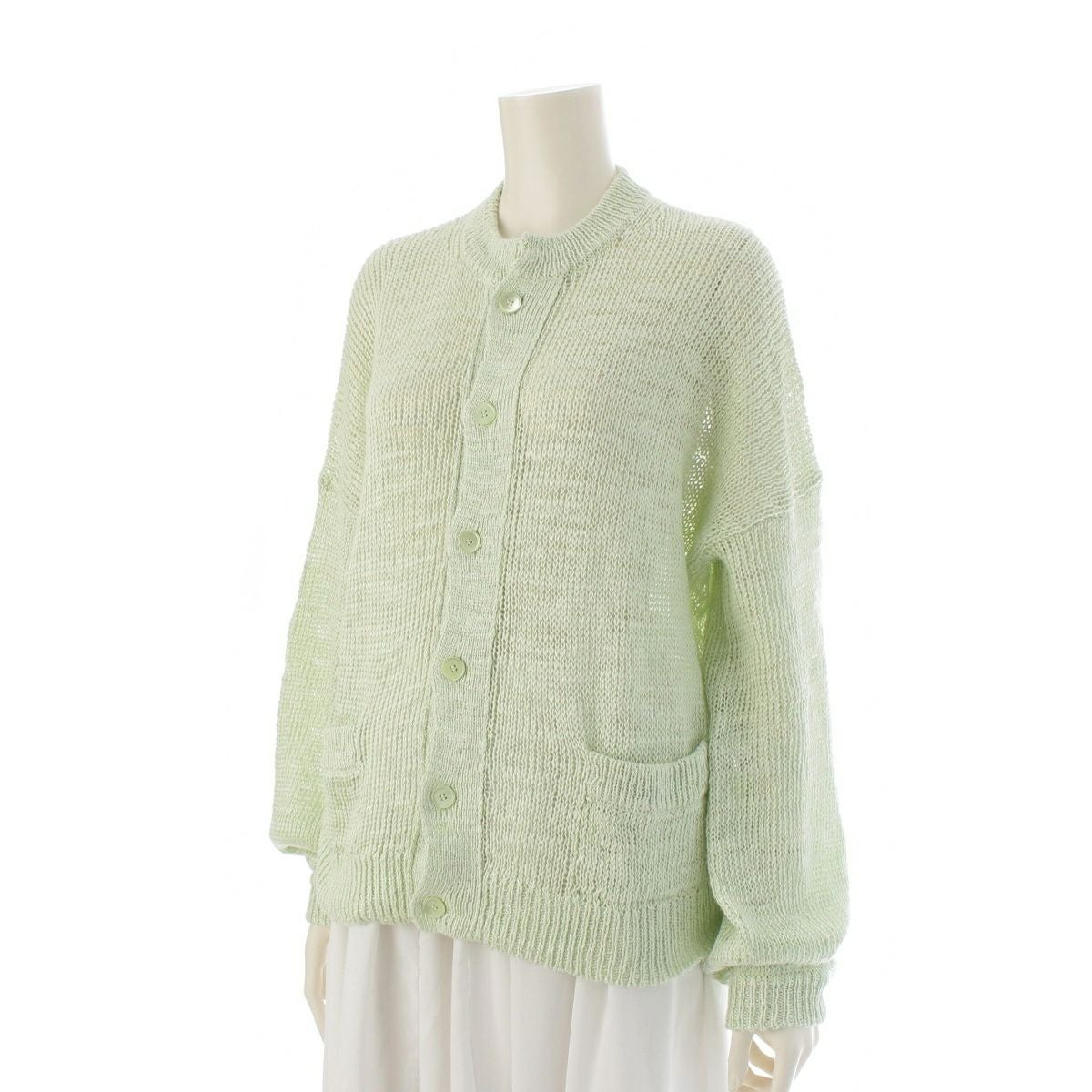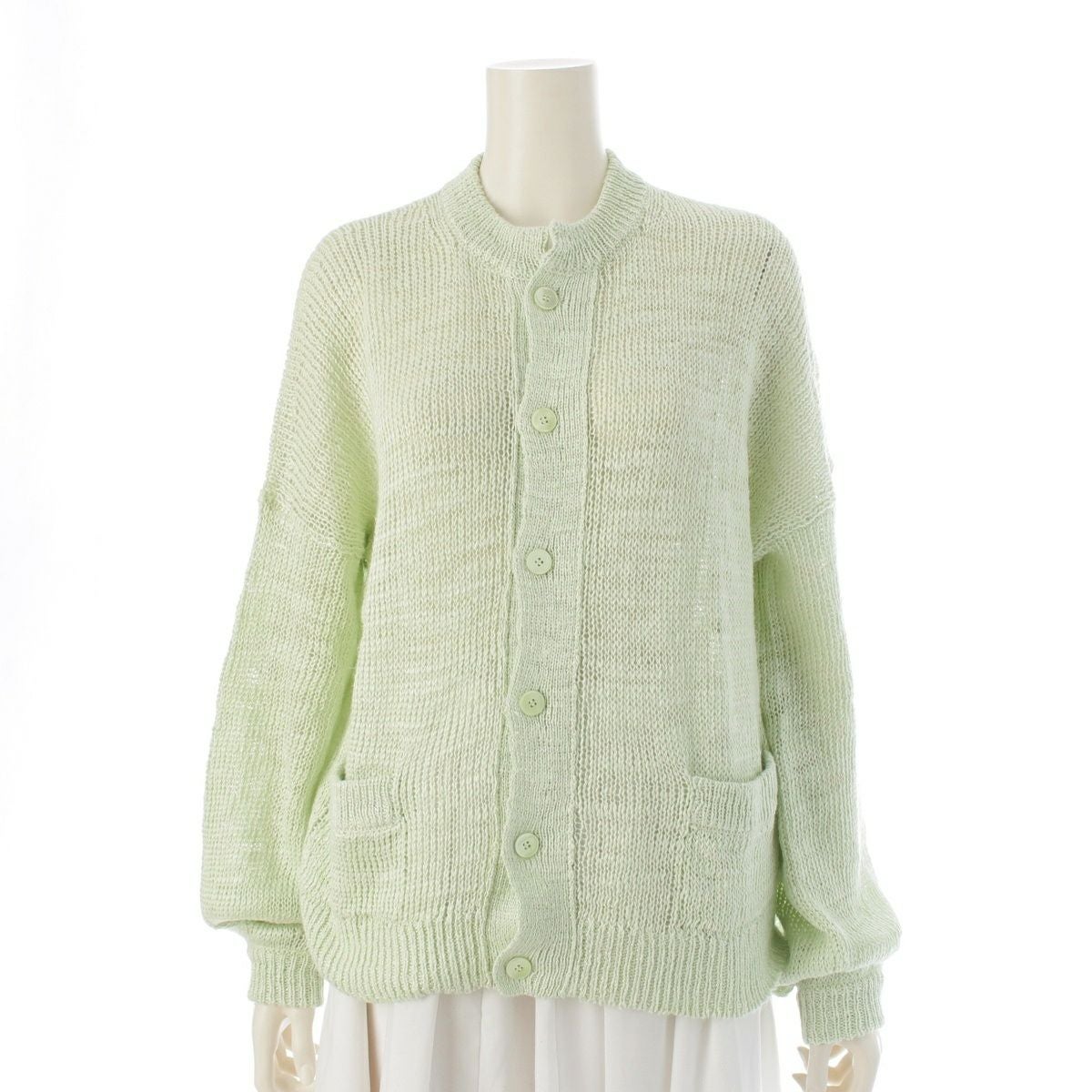 ブラミンク 24SS リネンシルク 3Gクルーネック カーディガン 7915-106-0069 ライムグリーン系 38