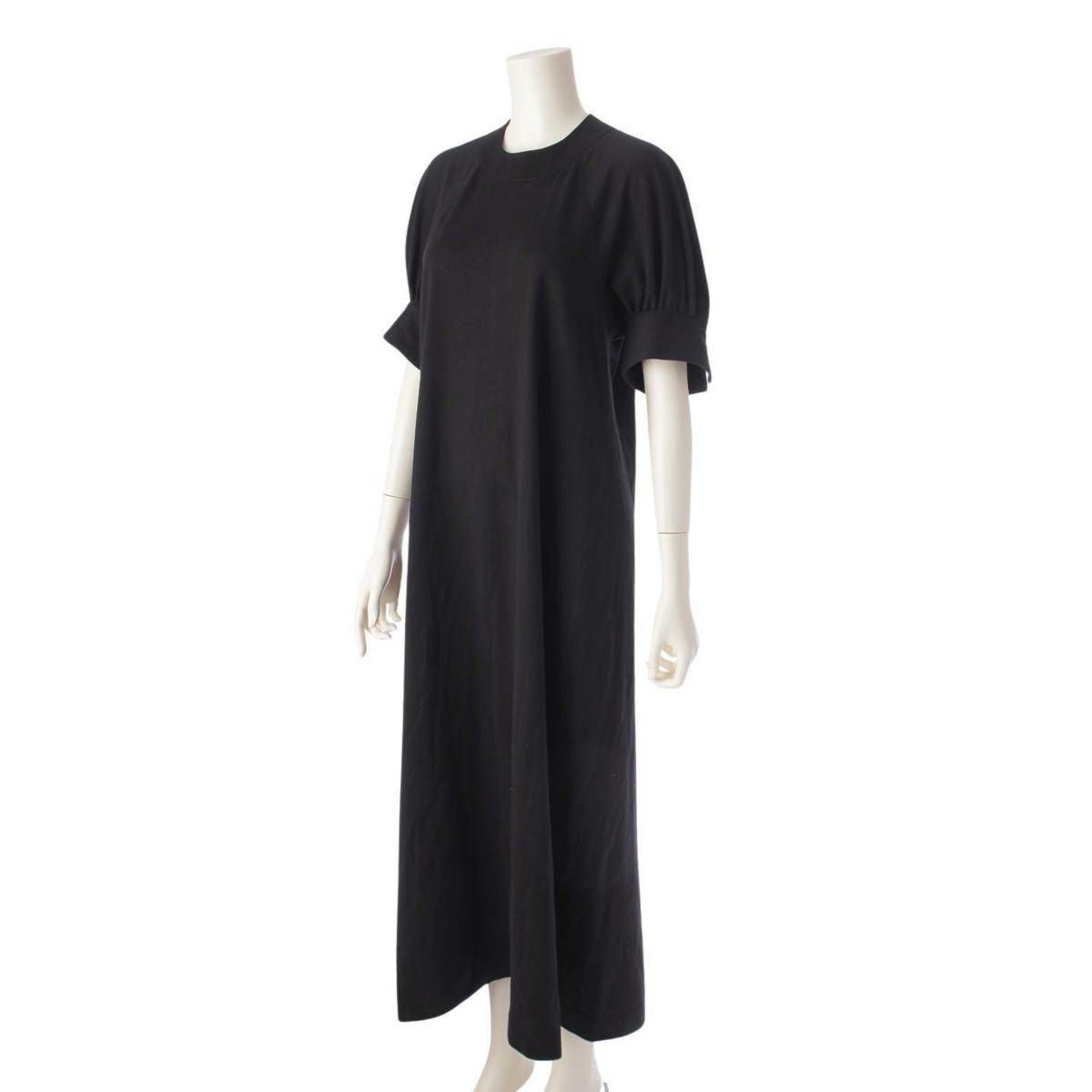 ブラミンク BLAMINK 23SS コットン クルーネック パフスリーブ ワンピース ブラック 36