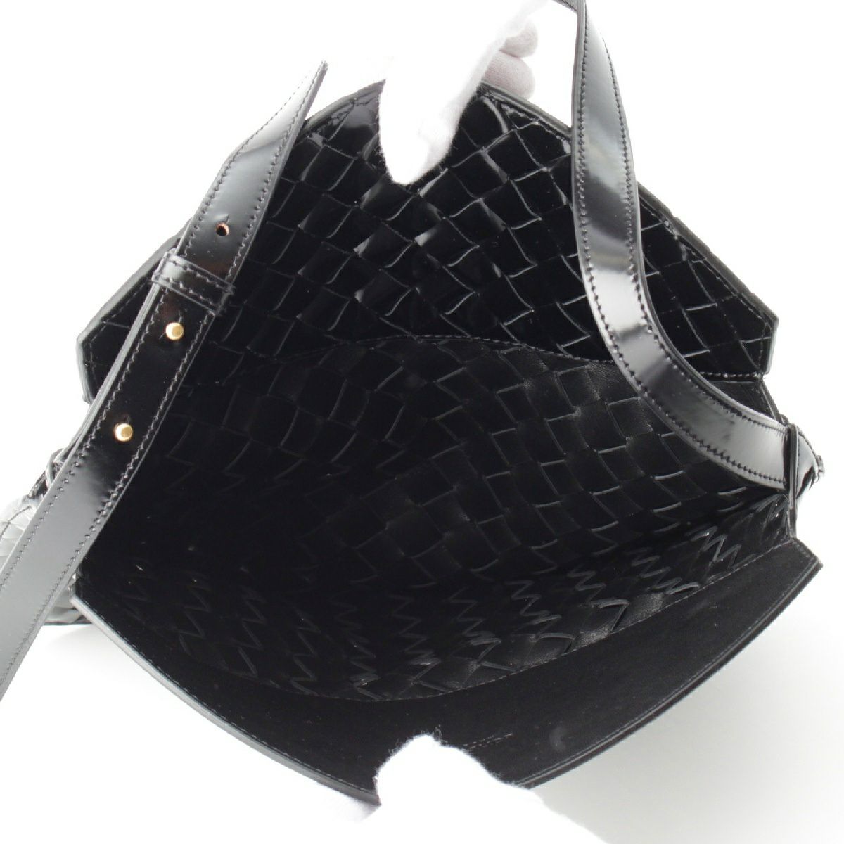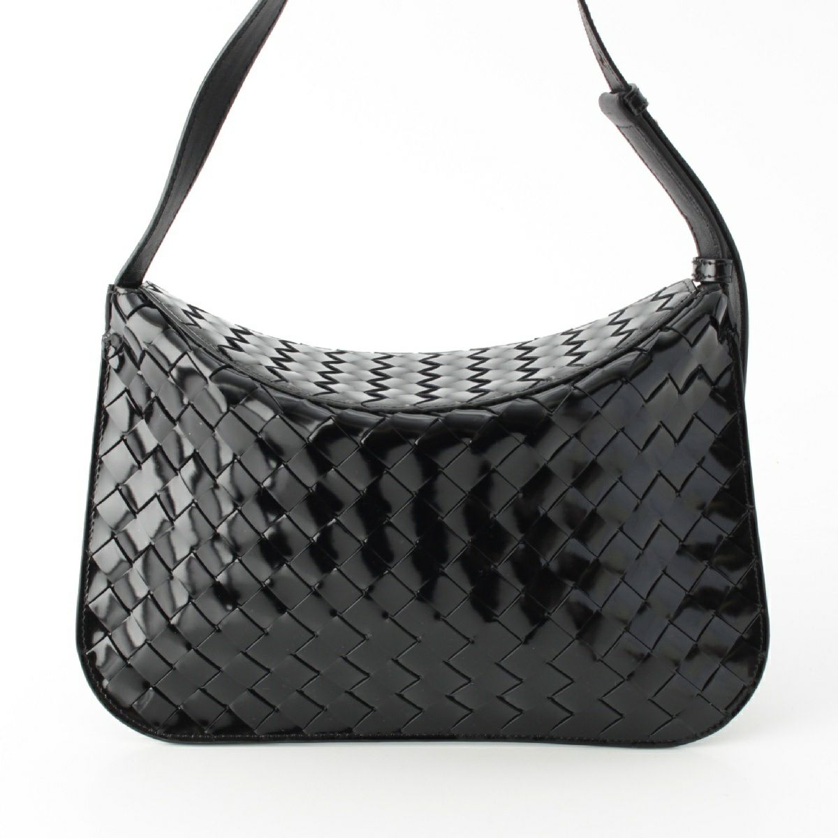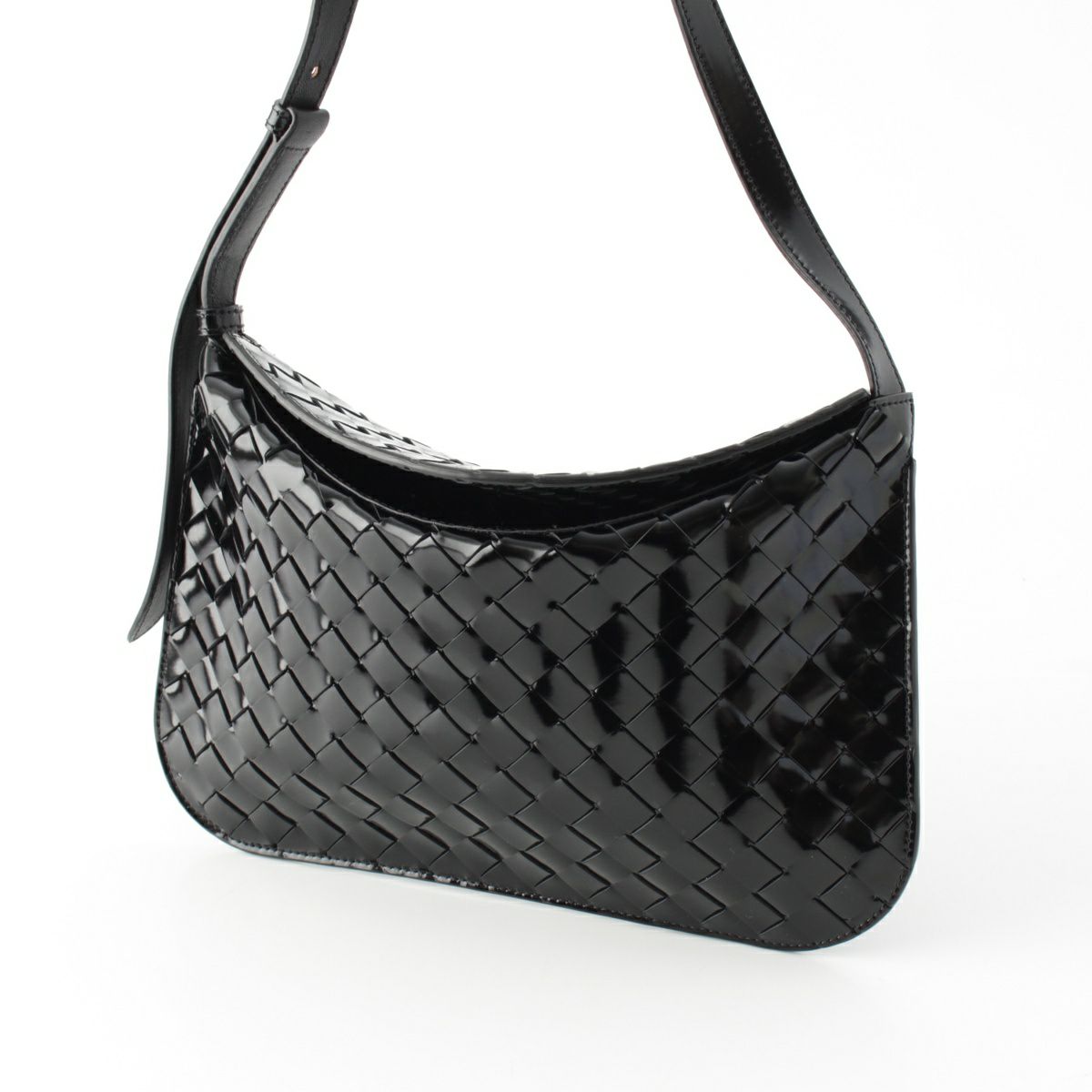 ボッテガヴェネタ イントレチャート シャイニーカーフ ホーボー ワンショルダー バッグ クロスボディ ブラック