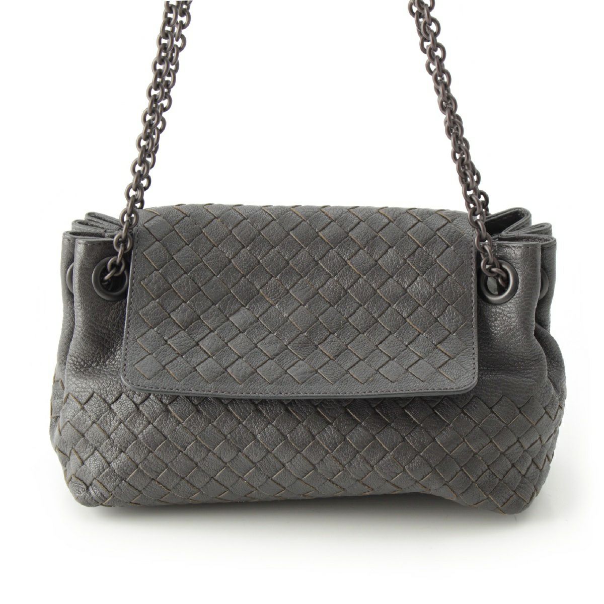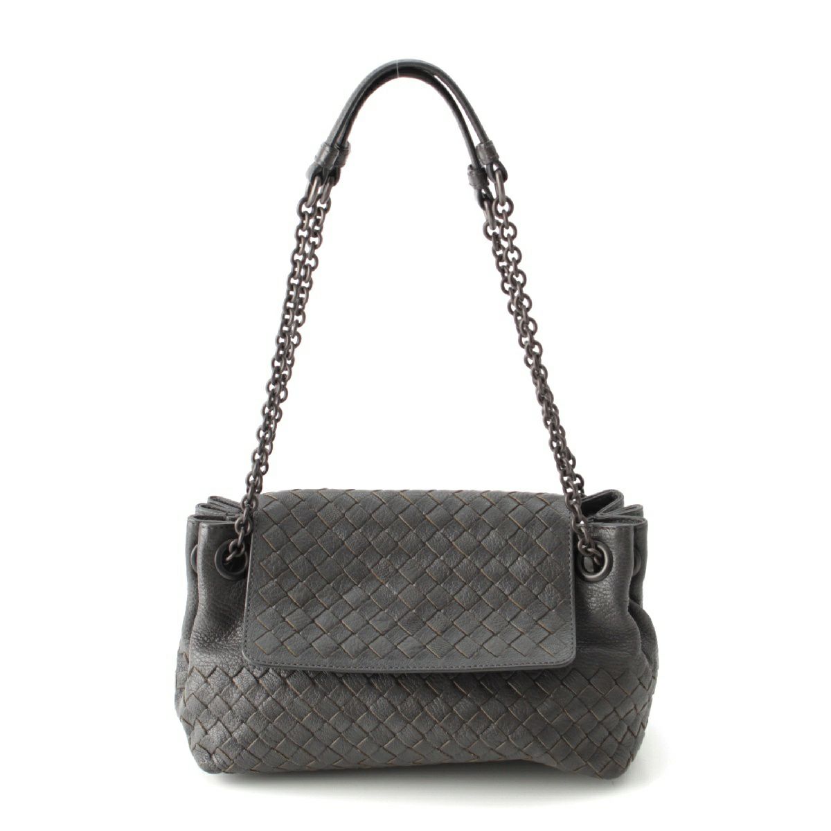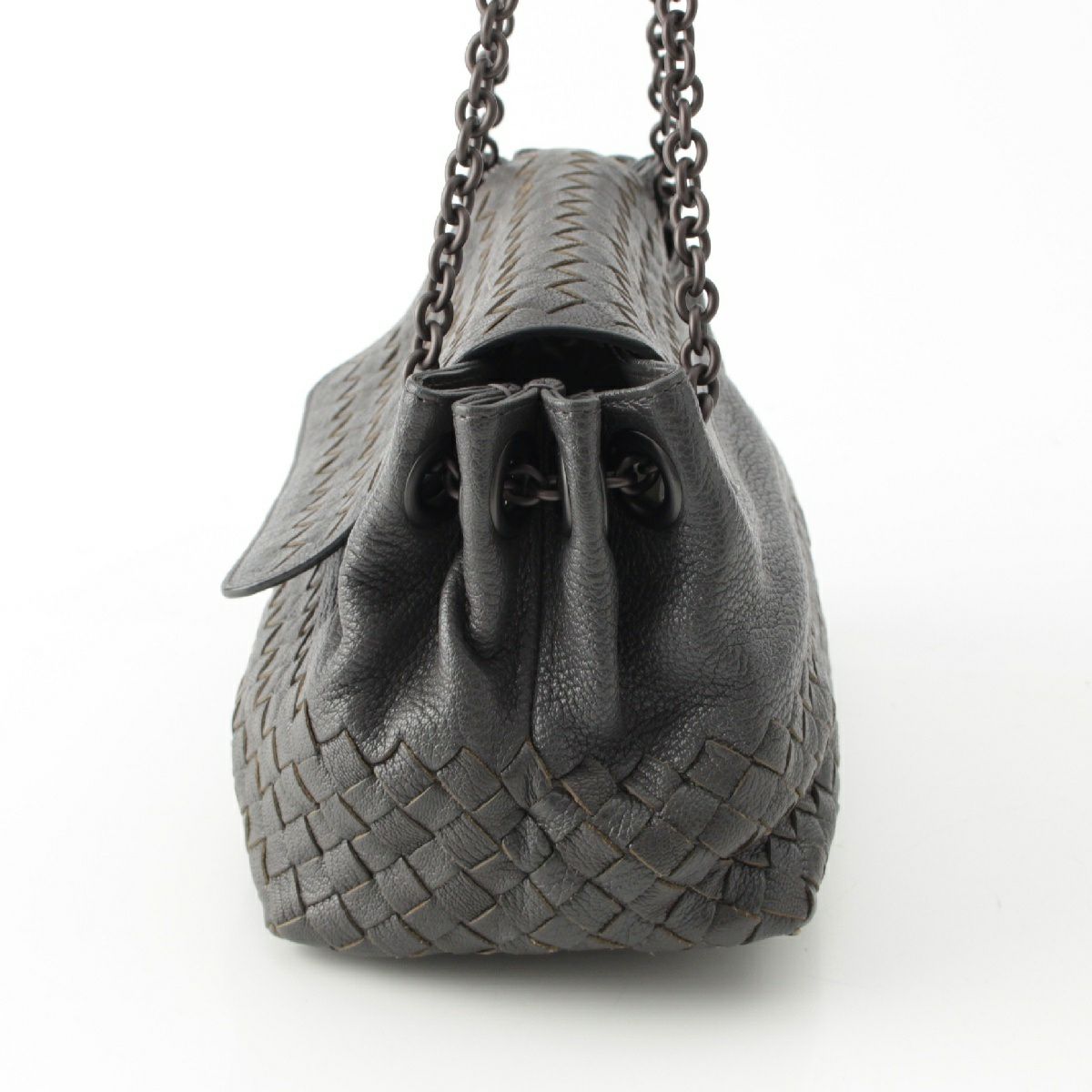 ボッテガヴェネタ レザー イントレチャート ダブルチェーン ショルダーバッグ ダークグレー