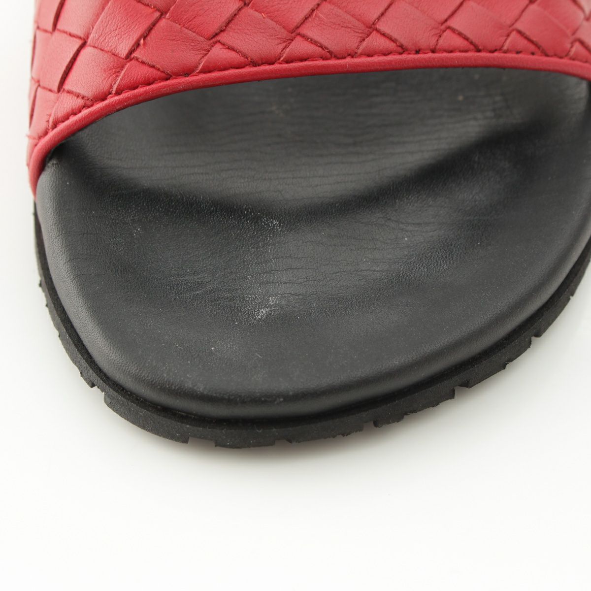 ボッテガヴェネタ レザー イントレチャート フラット サンダル ブラック レッド 36