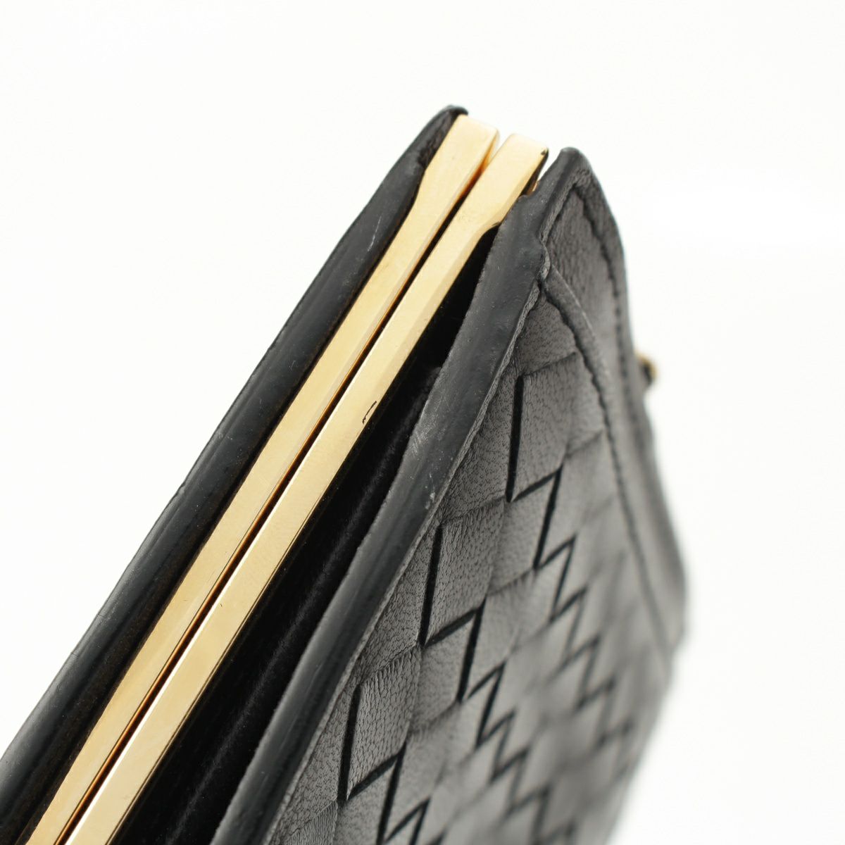 ボッテガヴェネタ レザー イントレチャート がま口 コインケース コンパクトウォレット ブラック