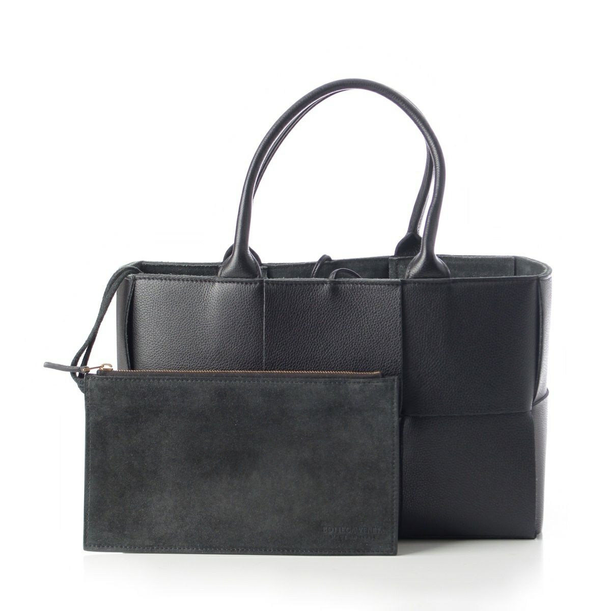 ボッテガヴェネタ アルコトート スモール レザー マキシイントレチャート ポーチ付き トートバッグ 652867 ブラック