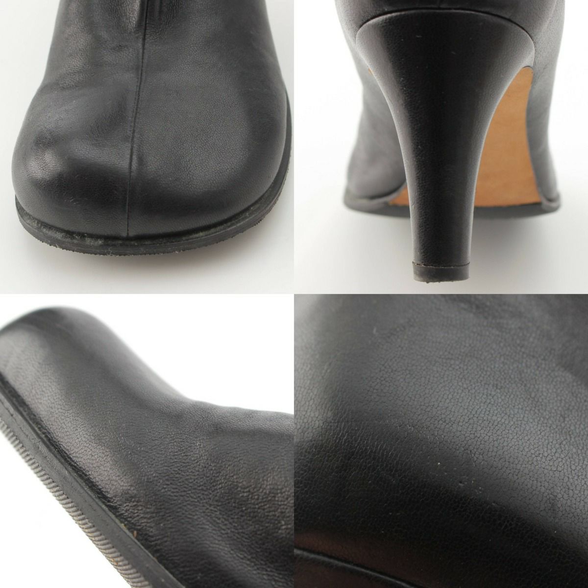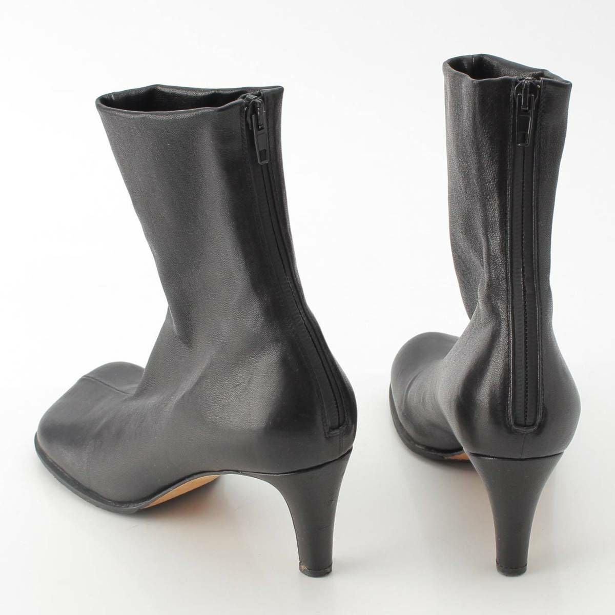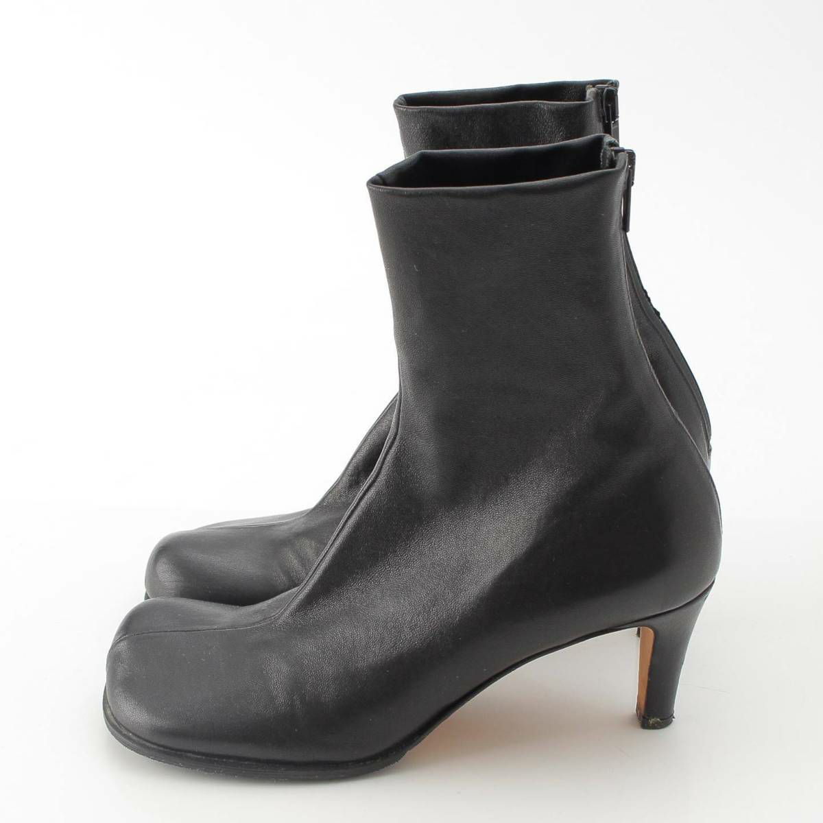 ボッテガヴェネタ Bottega Veneta スクエアトゥ ブロック レザー アンクル ショート ブーツ ブラック 37