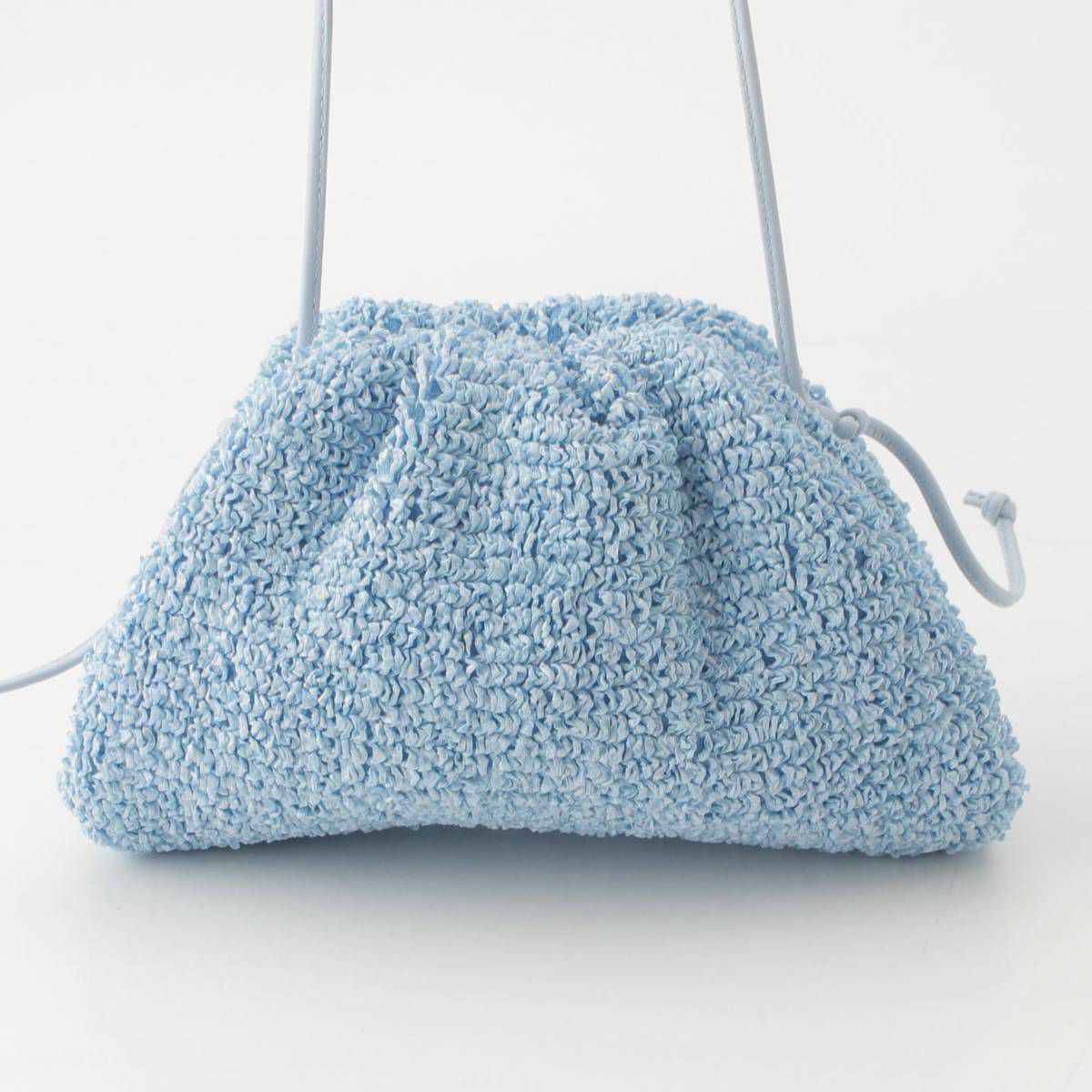 ボッテガヴェネタ Bottega Veneta ザポーチ ブークレカーリーラフィア がま口 ショルダーバッグ ライトブルー