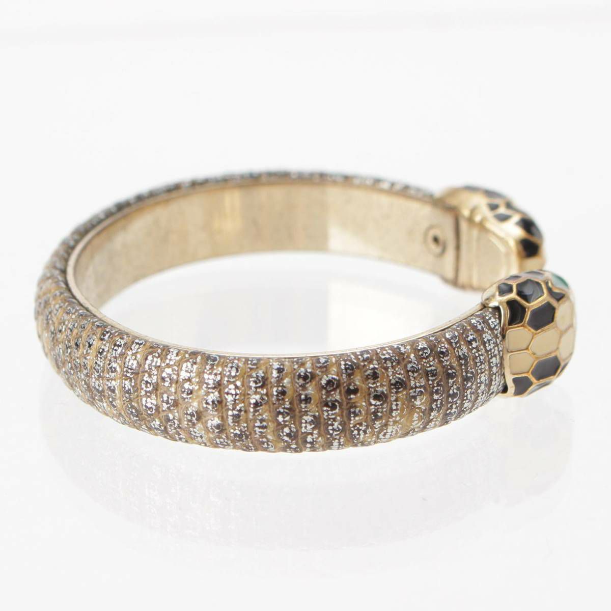 ブルガリ BVLGARI セルペンティ フォーエバー レザー×GP バングル ゴールド シルバー 29.9g