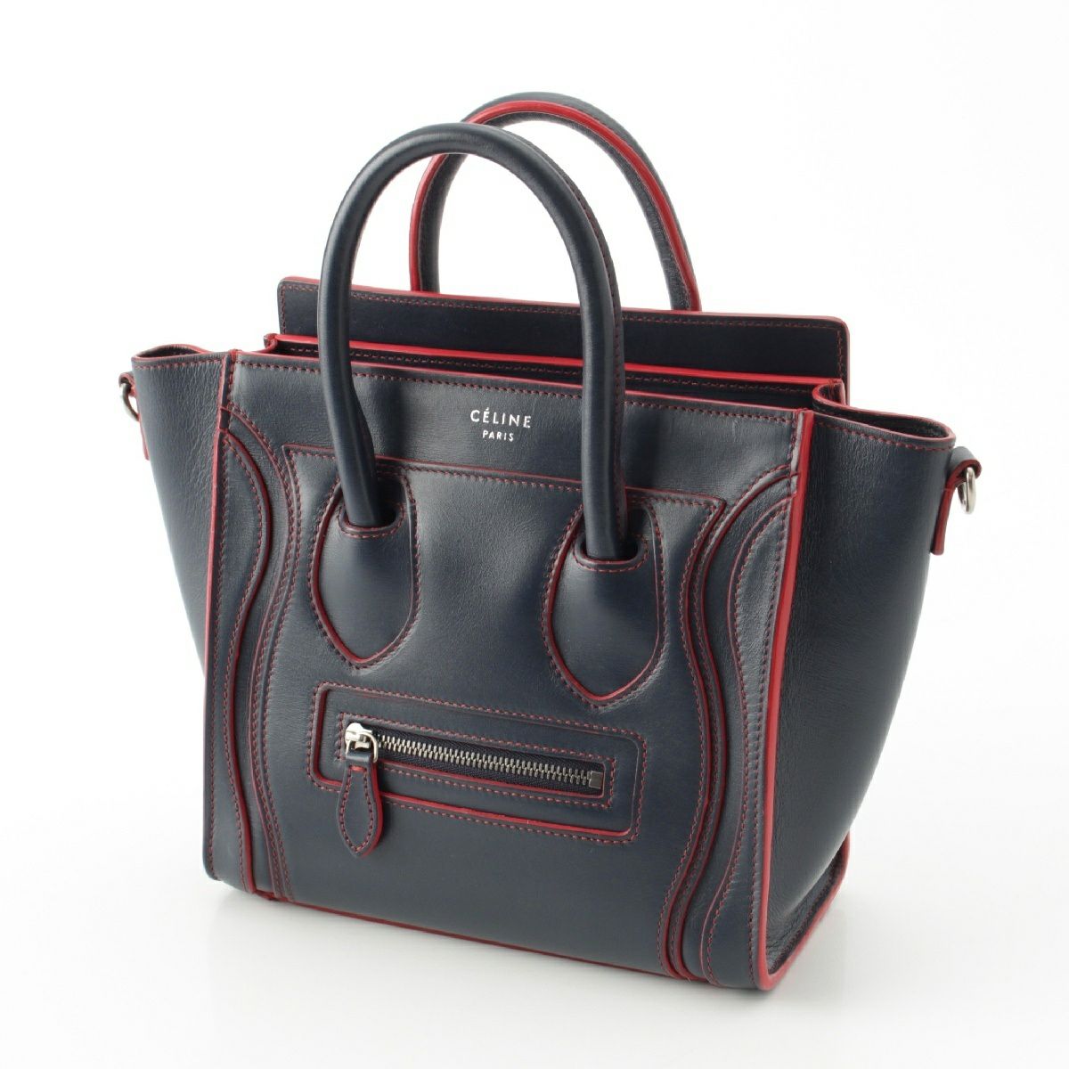 セリーヌ ラゲージ ナノショッパー レザー 2way ショルダー ハンドバッグ 180443AOY.070C ネイビー×レッド