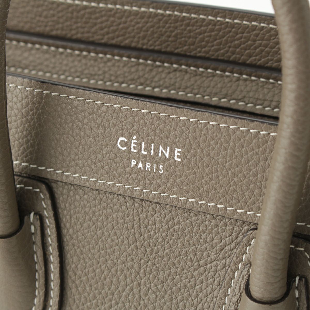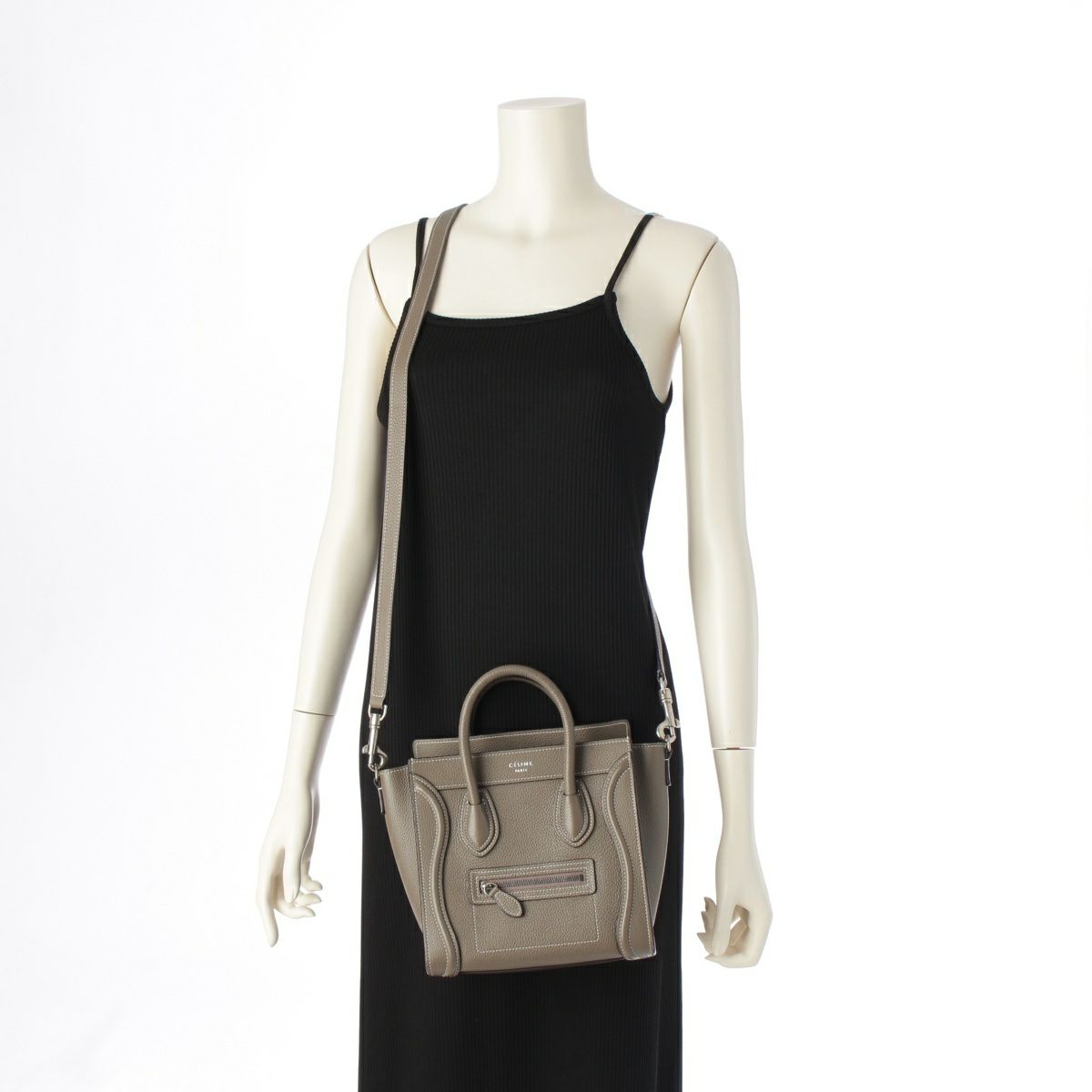 セリーヌ ラゲージ ナノショッパー レザー 2WAY ショルダー ハンドバッグ グレージュ