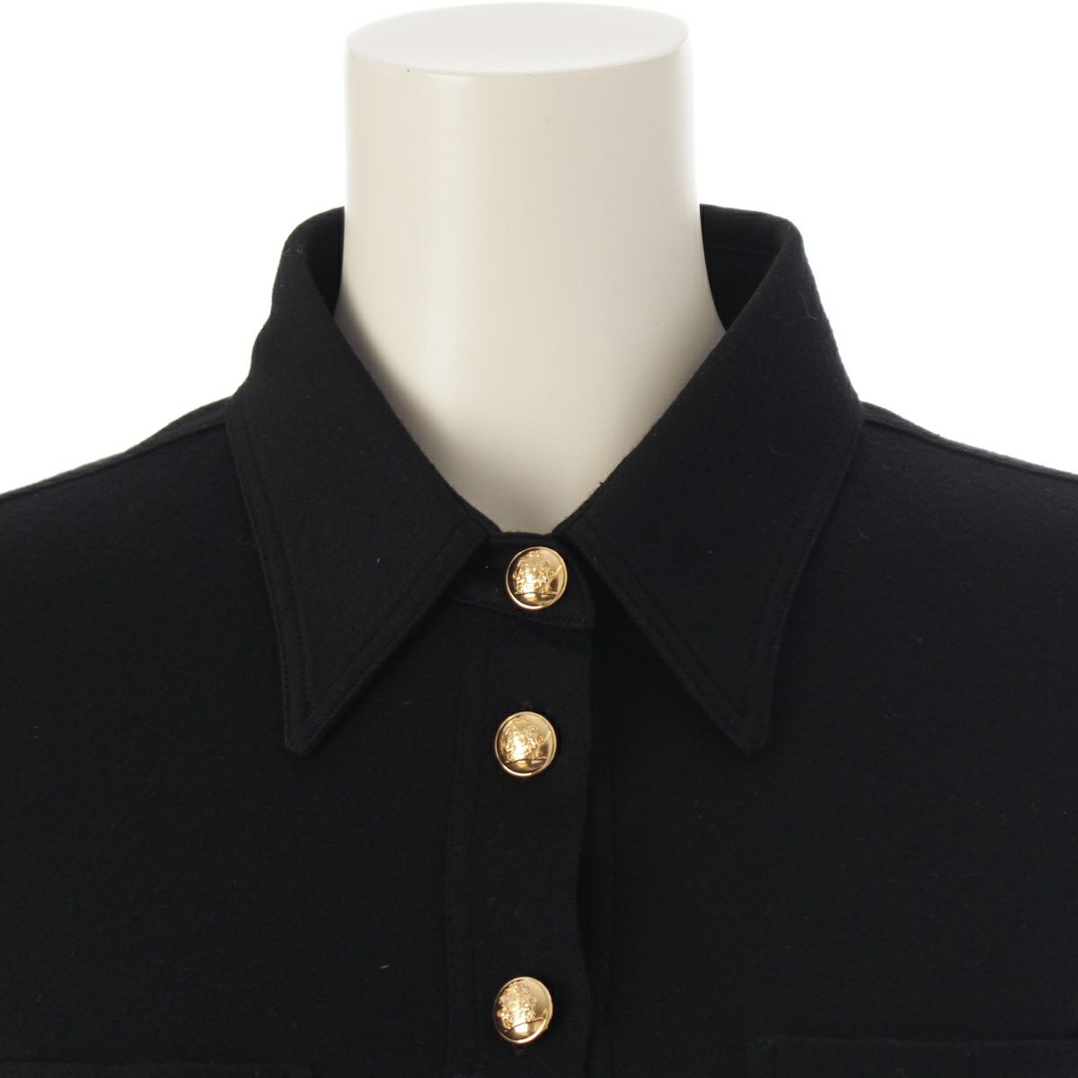 セリーヌ カシミヤ ウール 馬車刺繍 金ボタン 長袖 ニット ワンピース 2X561453L ブラック 36