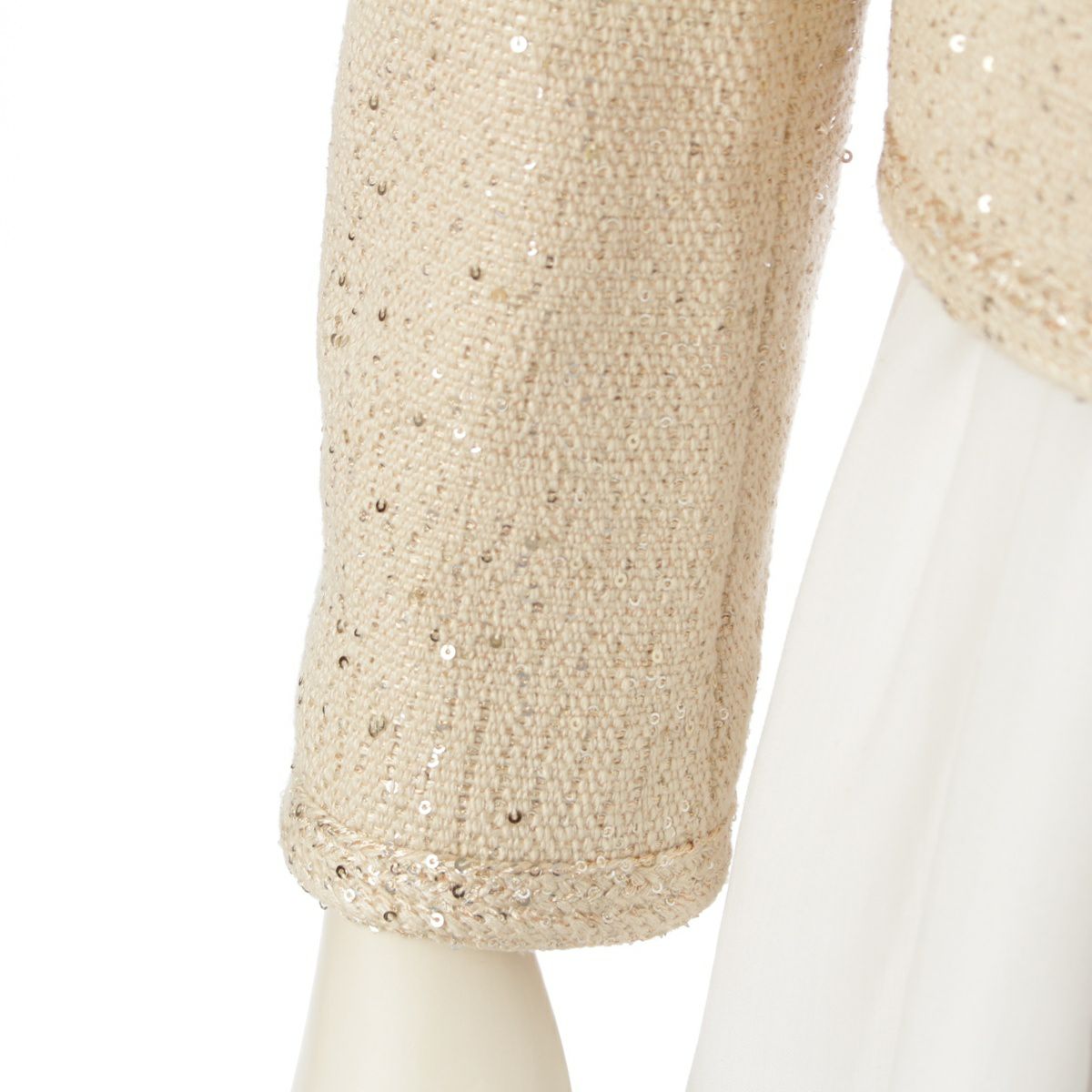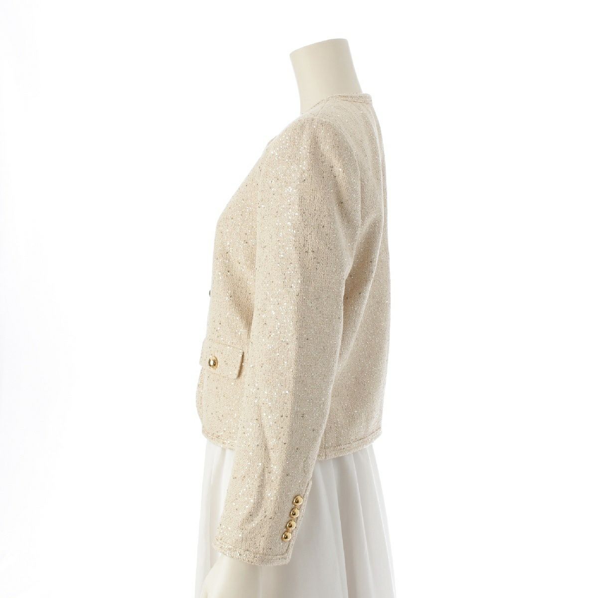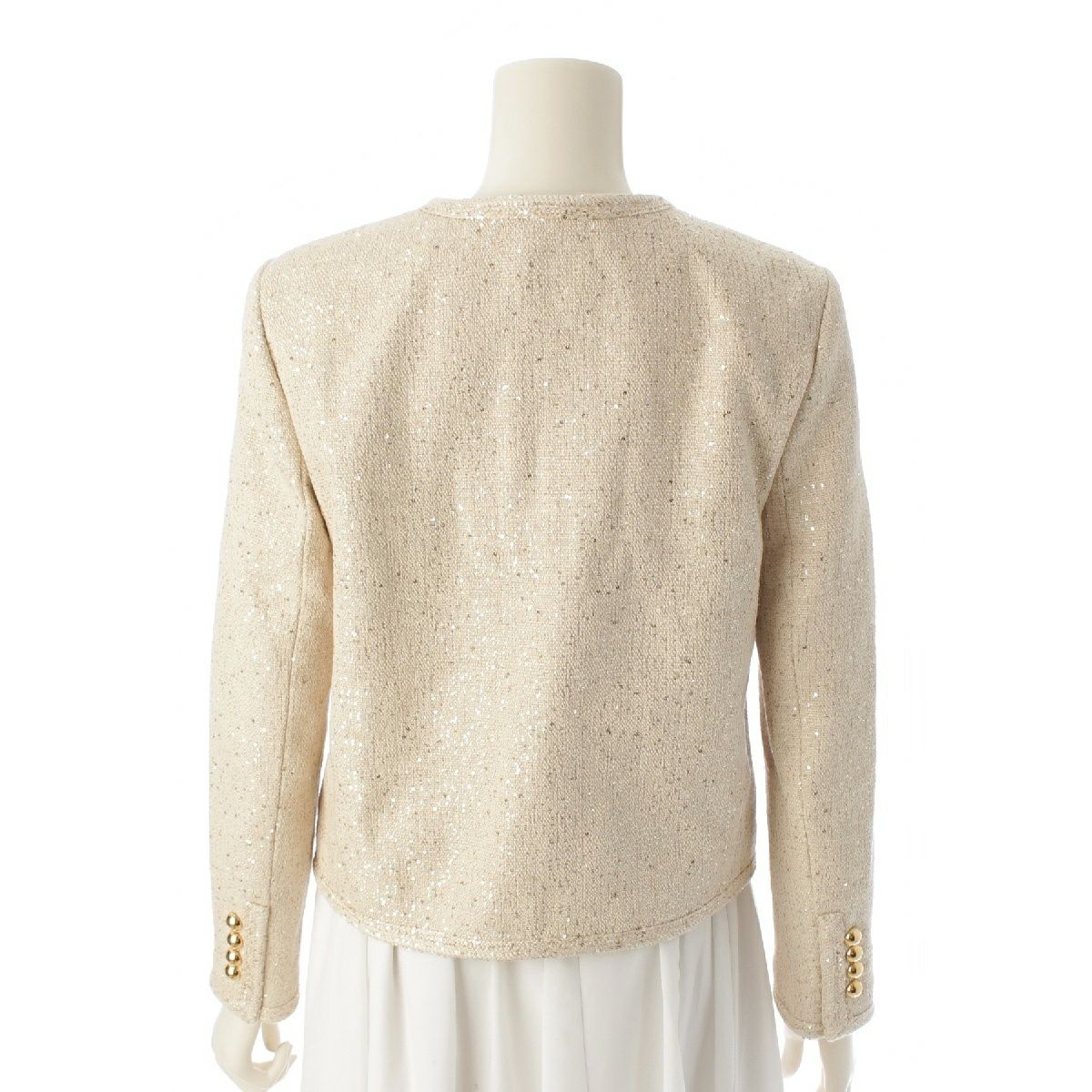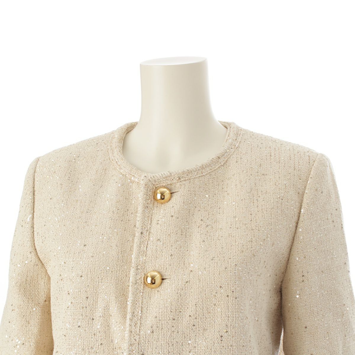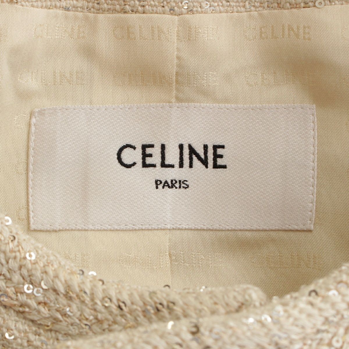 セリーヌ シルクツイード スパンコール ノーカラー チェルシー ジャケット アイボリー 36