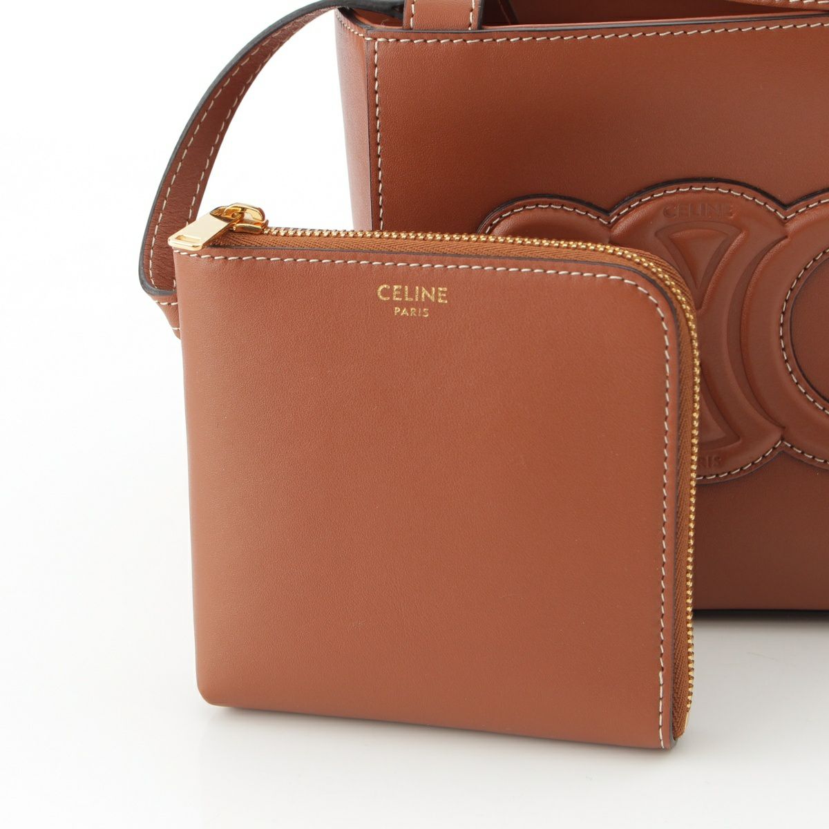セリーヌ レザー トリオンフ Cube キューブ トートバッグ ポーチ付き タン