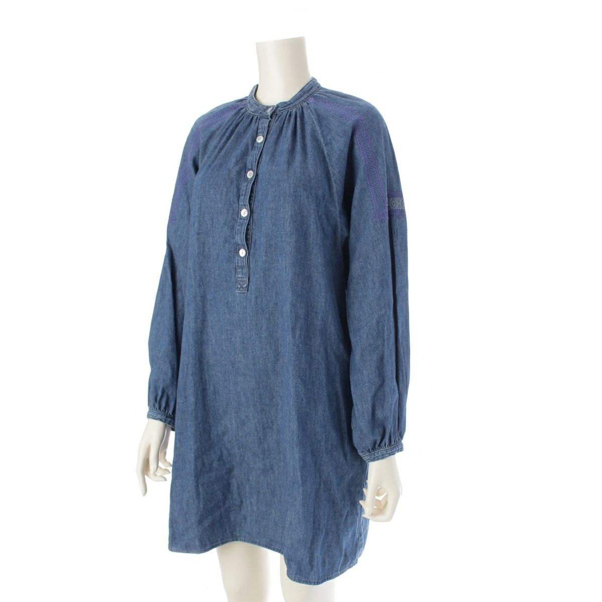 セリーヌ コットン デニム 刺繍 長袖 ワンピース ドレス 2U0262081 インディゴ XS