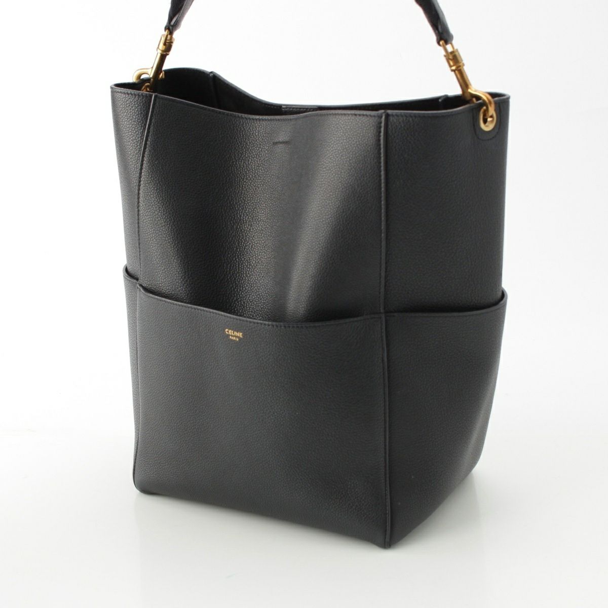 セリーヌ サングルバケット レザー ショルダーバッグ ブラック