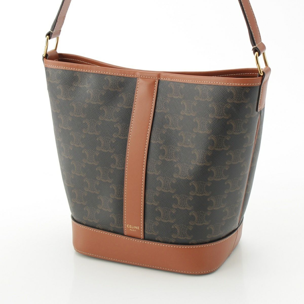 セリーヌ トリオンフ スモールバケット PVC レザー ショルダーバッグ ブラウン