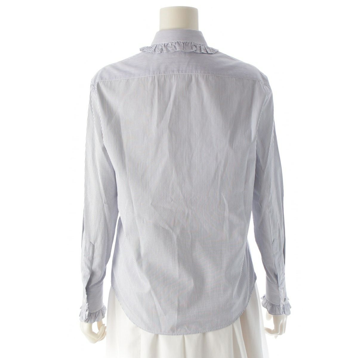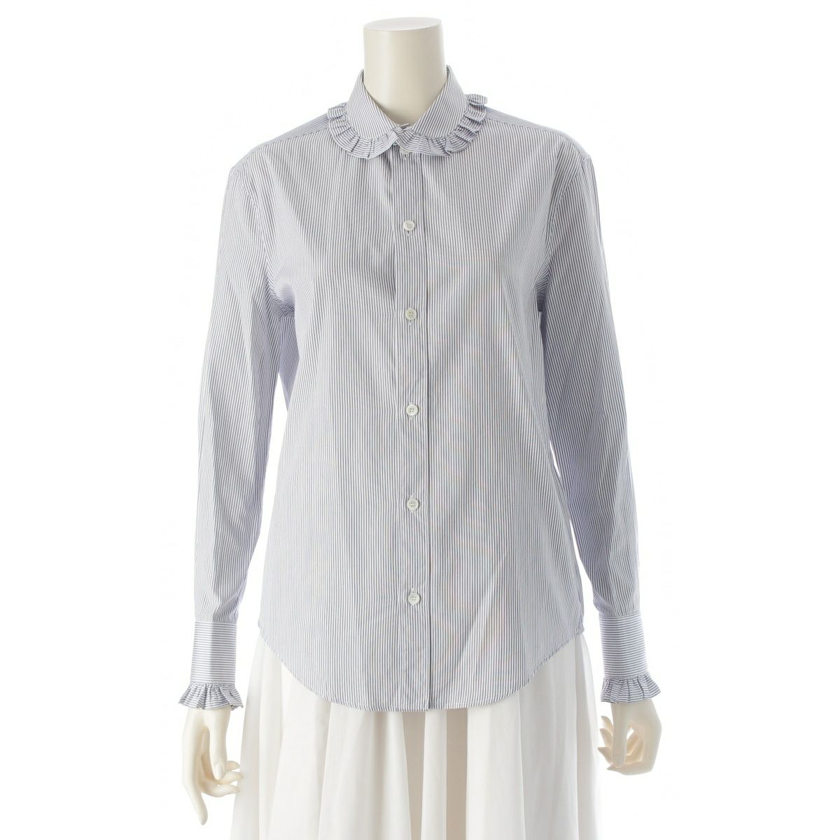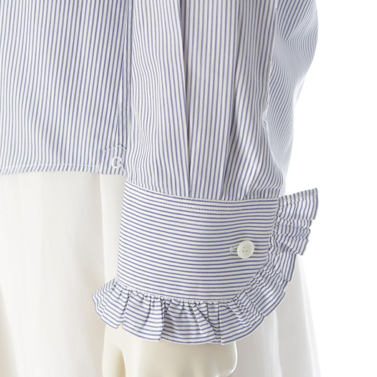 セリーヌ コットン ストライプ フリル ブラウス 長袖シャツ トップス ブルー ホワイト 36