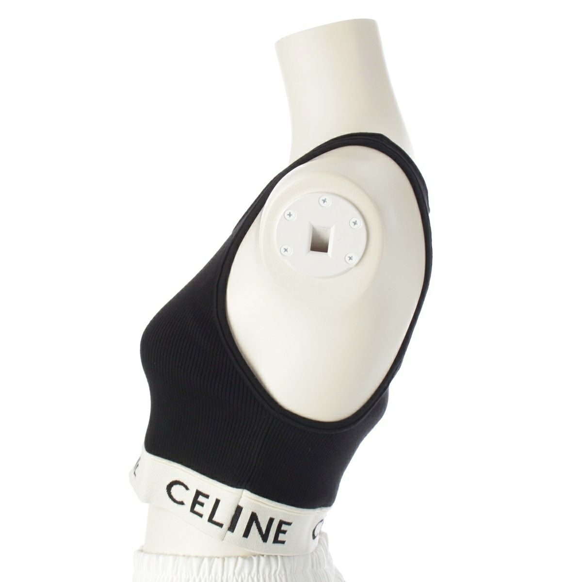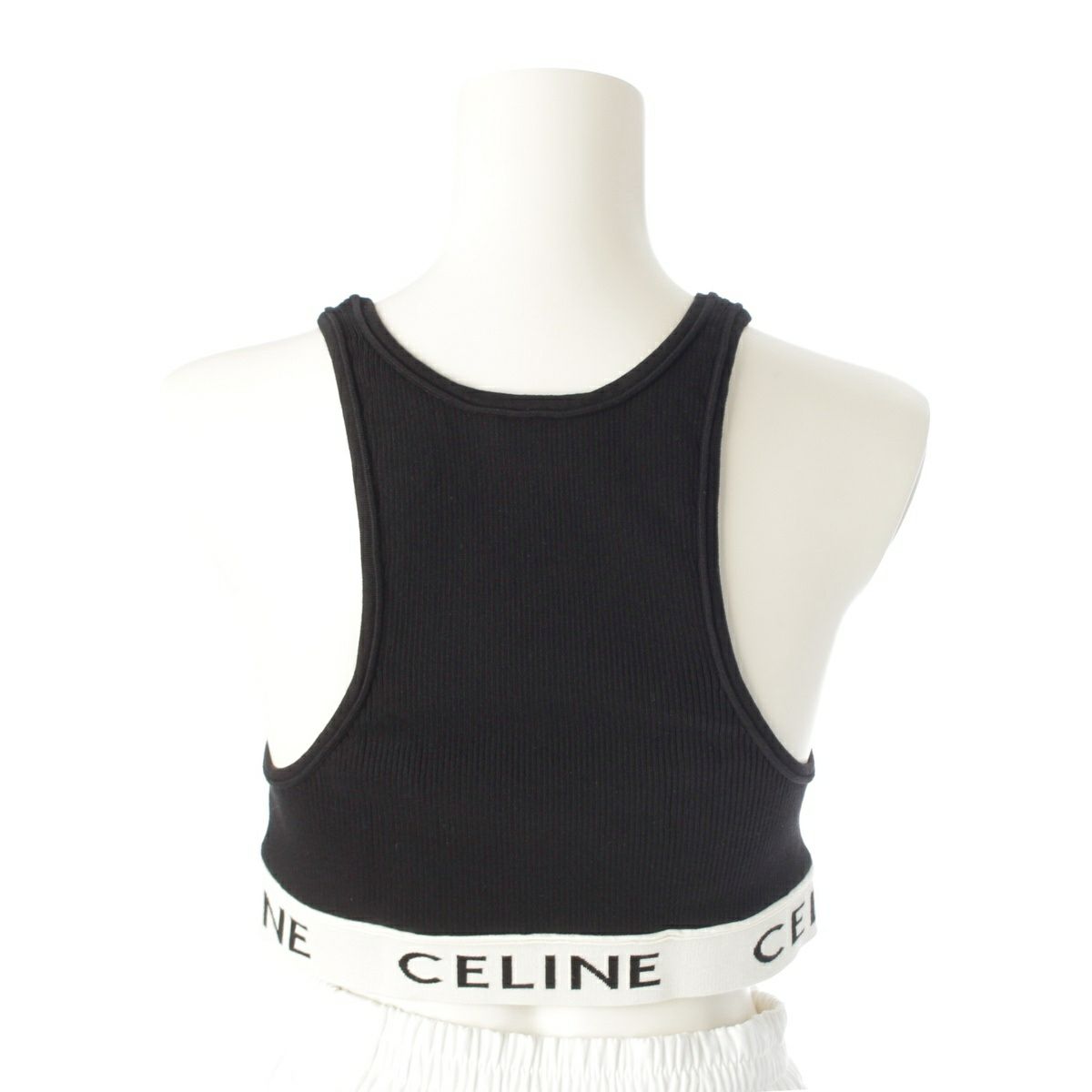 セリーヌ コットン ロゴ クロップド タンクトップ ノースリーブ トップス 2A68L372N ブラック ホワイト M
