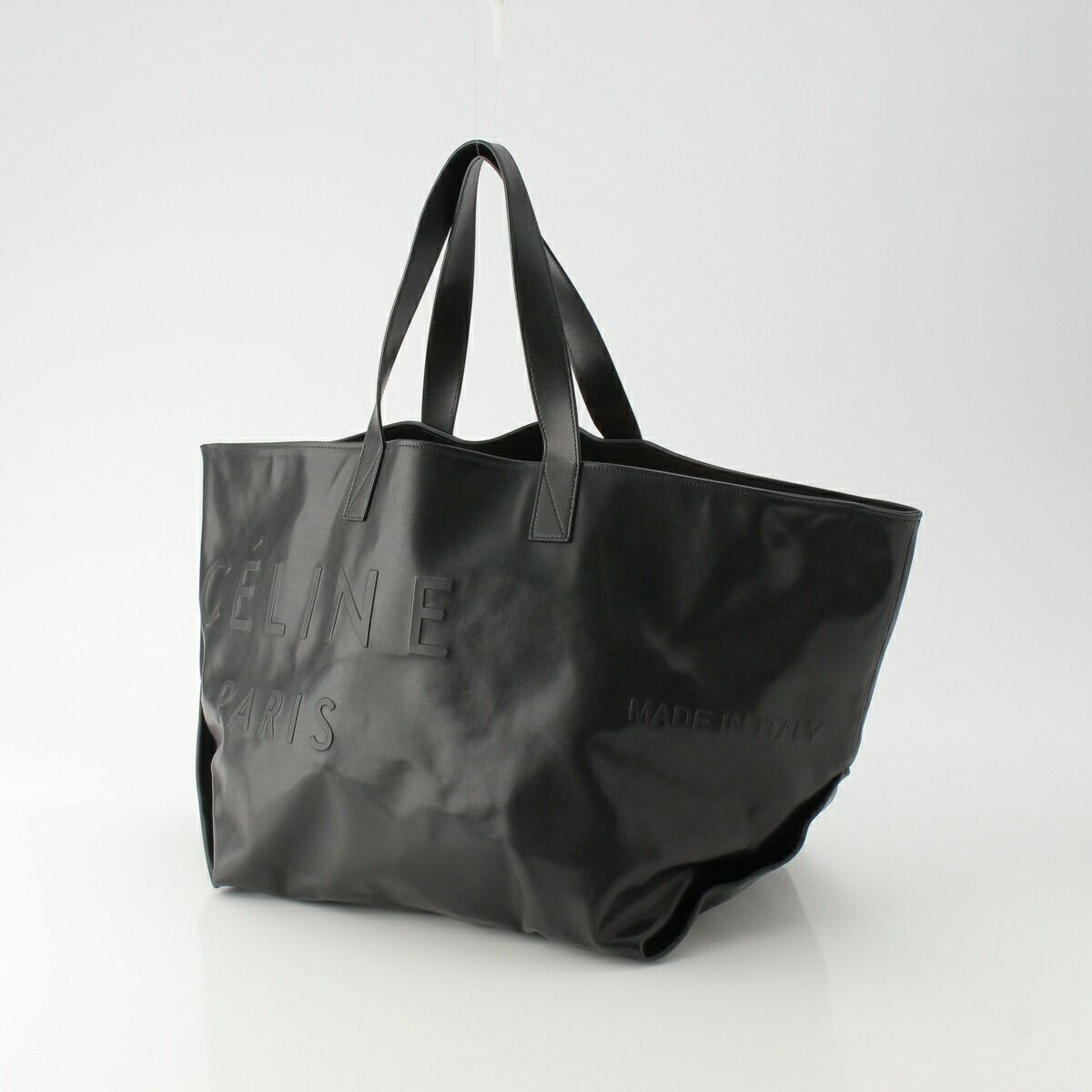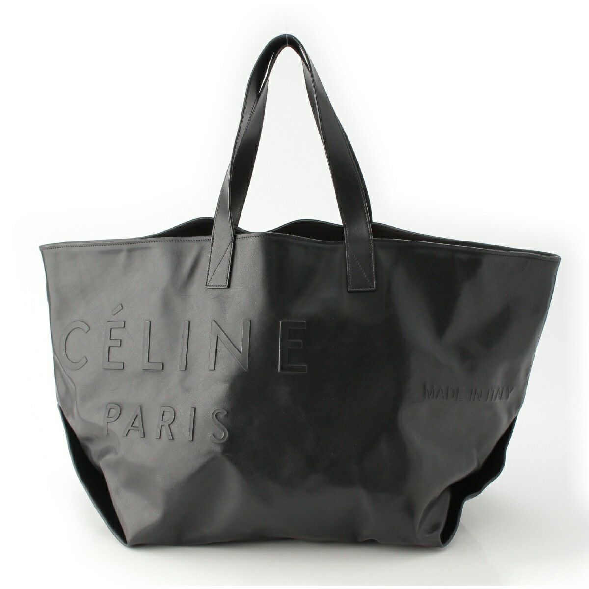 セリーヌ メイドイン ロゴエンボス オールレザー ラージ トートバッグ 18609 ブラック【中古】【正規品保証】
