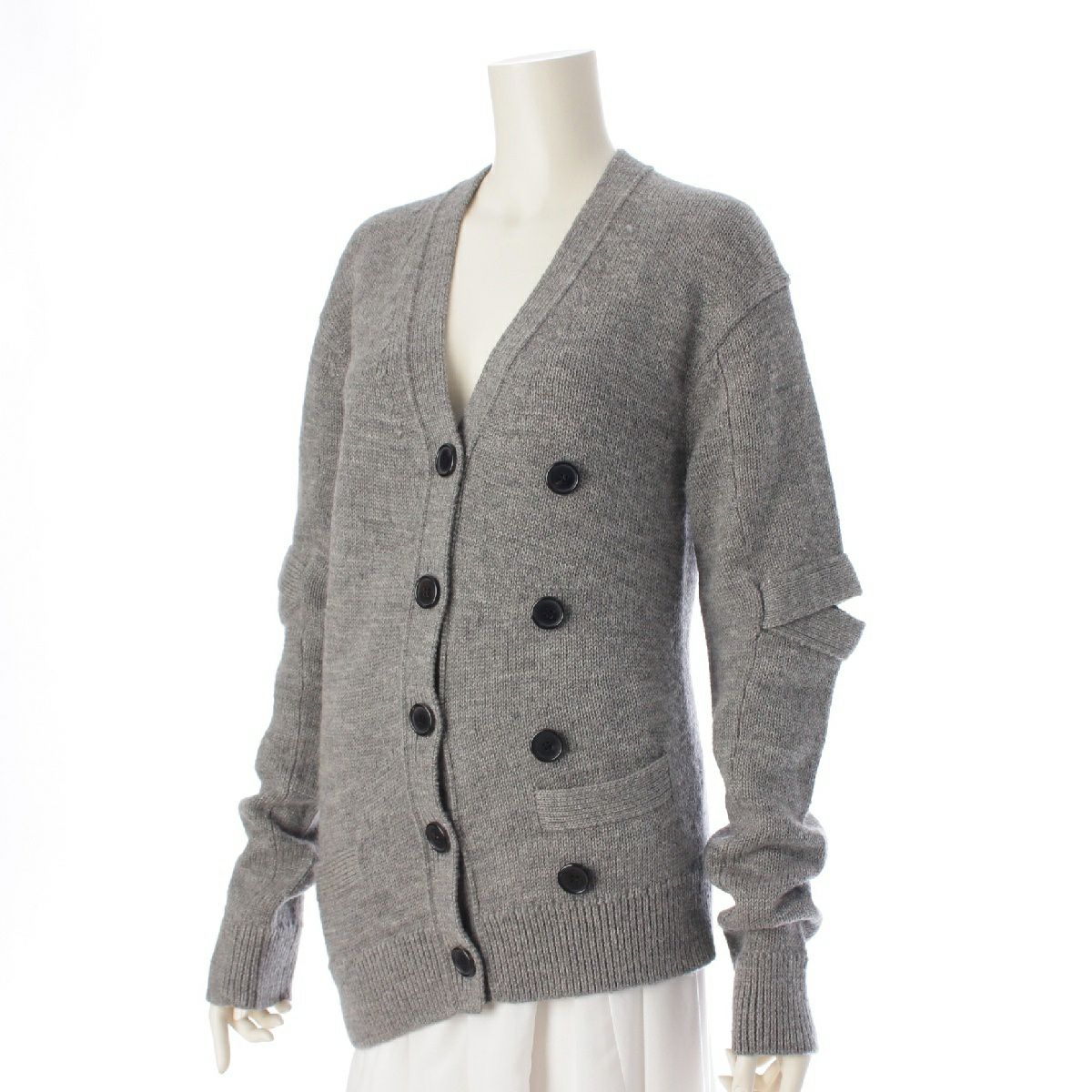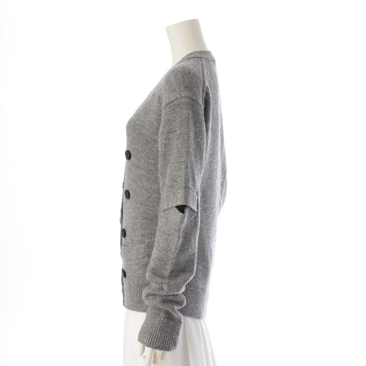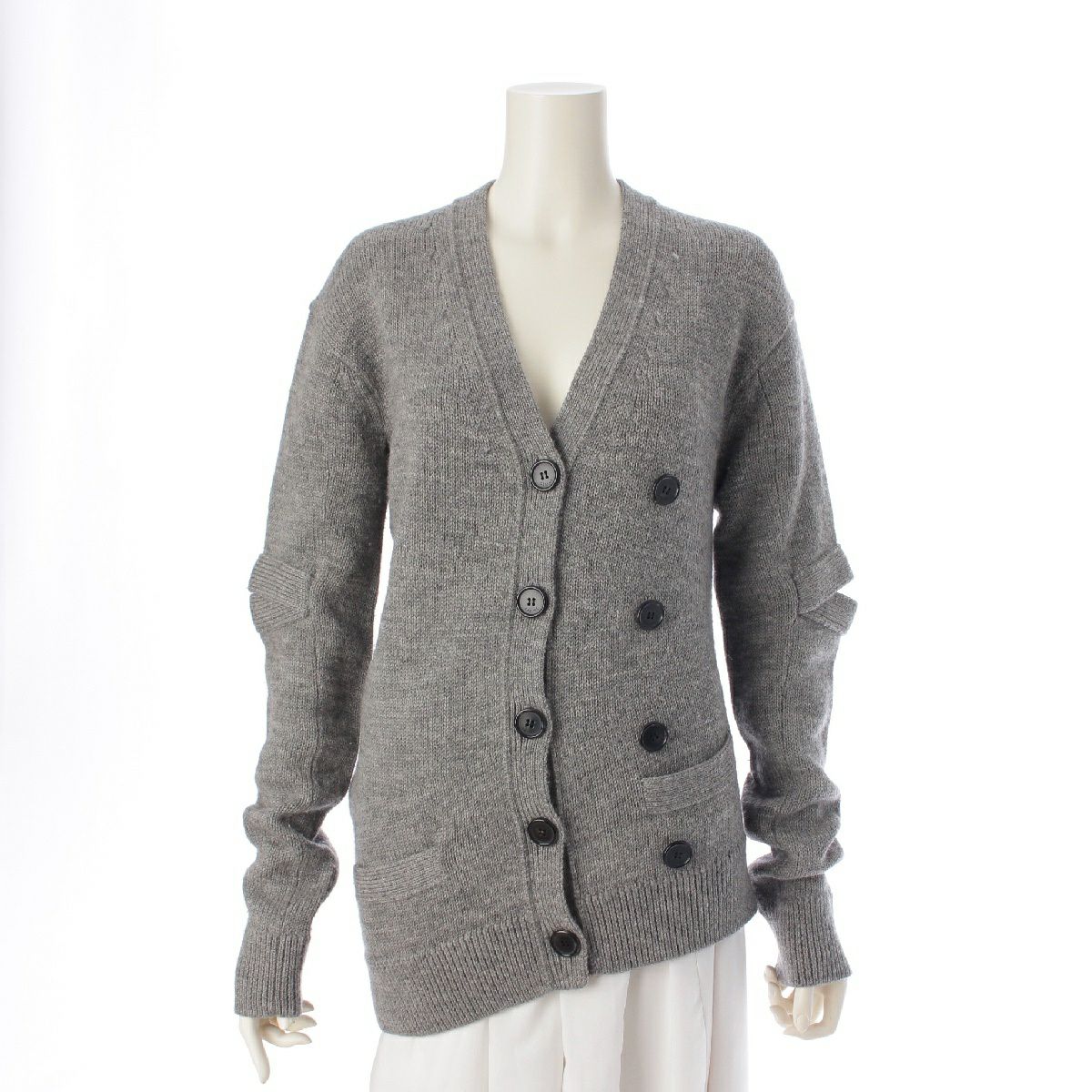 セリーヌ 17FW フィービー期 ウール ダブルボタン アシンメトリー エルボーカット ニット カーディガン トップス グレー XS